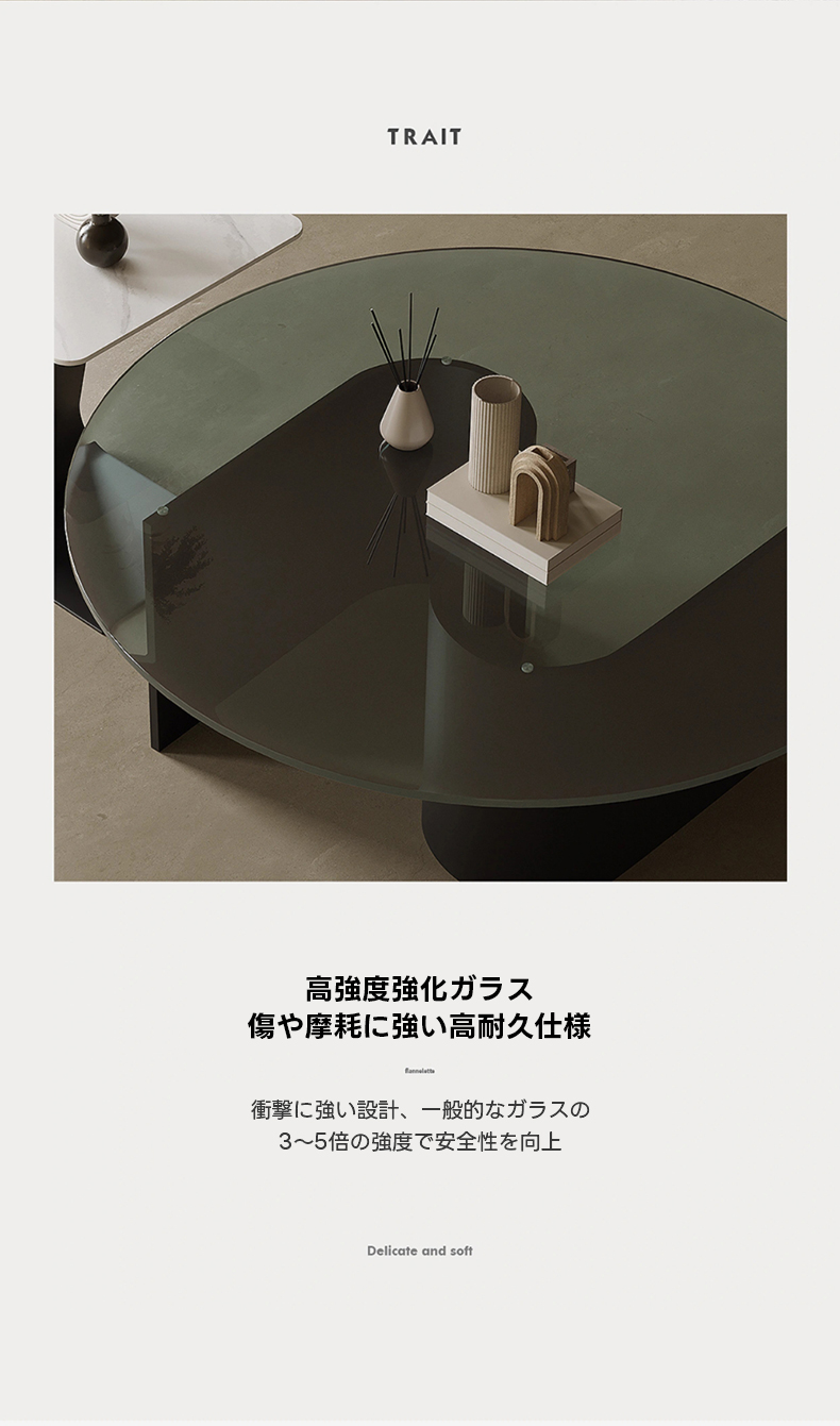 - 【高強度強化ガラス使用】:テーブルトップには高強度強化ガラスを採用し、耐衝撃性と耐久性に優れています。一般的なガラスの3~5倍の強度を持ち、安全性を向上させています。スタイリッシュなデザインで、どんなインテリアにもマッチします。
