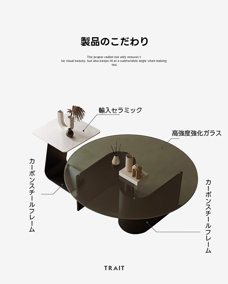 - 【高品質な素材とデザイン】:カーボンスチールフレームが安定感と美しさを兼ね備え、輸入セラミックのサイドテーブルは大理石のような質感が特徴です。これにより、エレガントで高級感のあるインテリアを実現します。