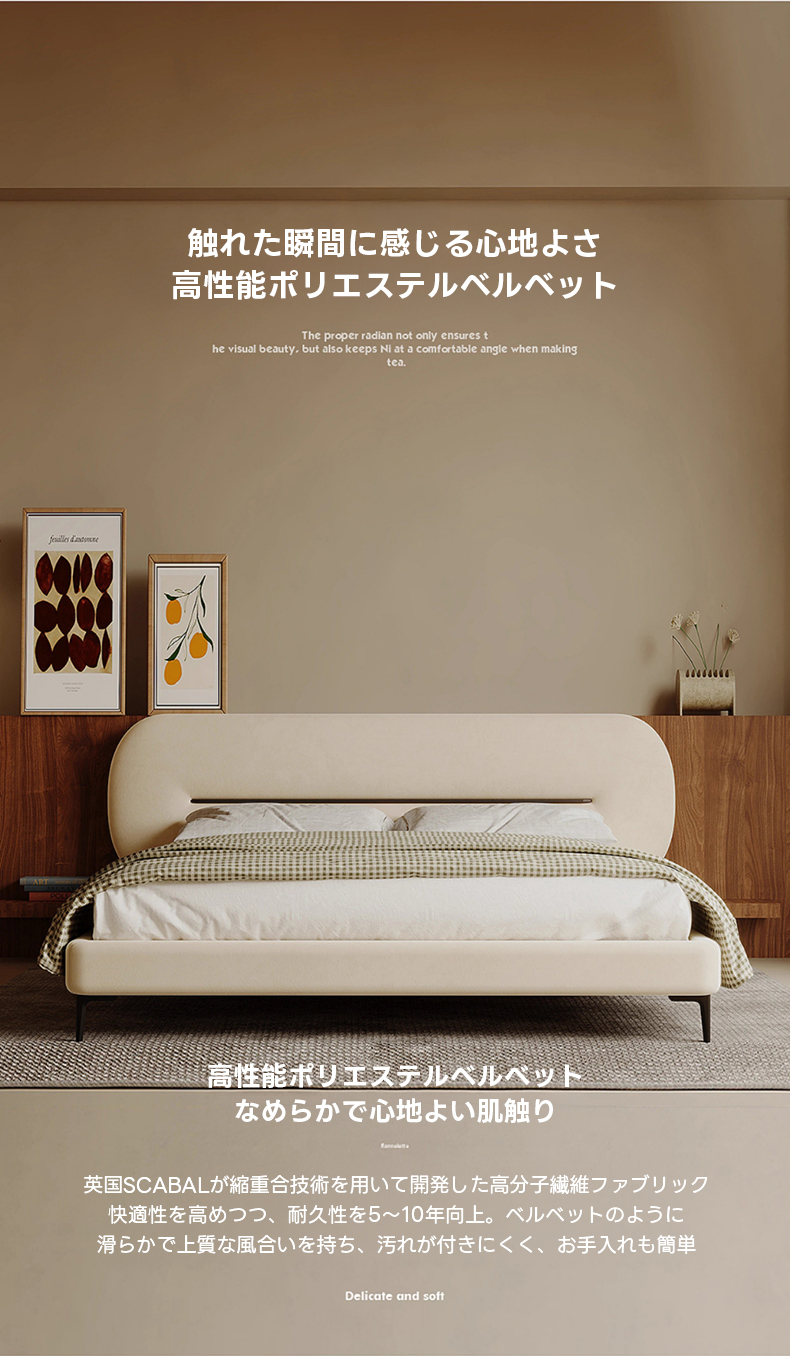 - 【極上のくつろぎを提供するベルベット調ファブリックベッド】高品質なポリエステルベルベットを使用し、滑らかで心地よい肌触りを実現。高密度ウレタンフォームが体をしっかり支え、極上のくつろぎを提供します。