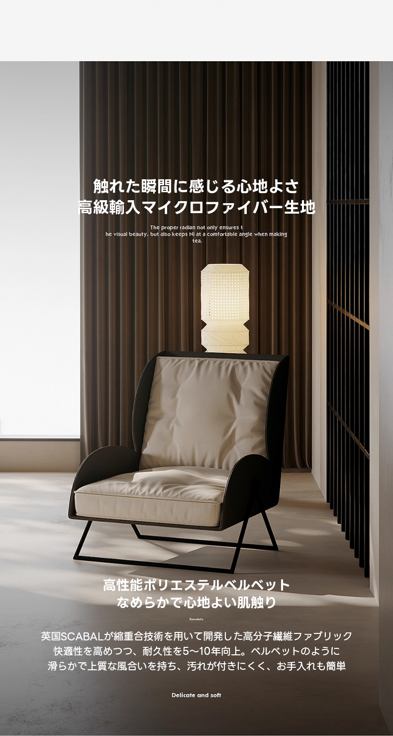 - 【エレガントなデザインと高級感】イタリアンモダンのエレガントなデザインが特徴のベルベット調パーソナルチェアです。高級感あふれるファブリックが、リビングや寝室にスタイリッシュな雰囲気を演出します。