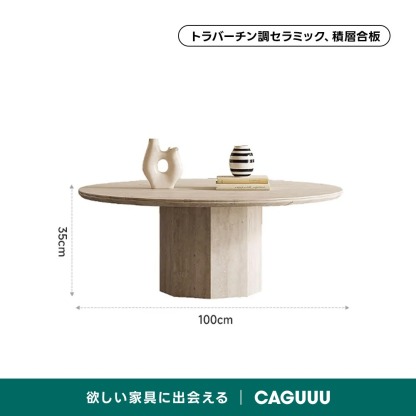 - 【素材とデザインの融合】天板は高品質トラバーチン調セラミック、フレームは積層合板を使用しています。これにより、美しさと耐久性を兼ね備えたデザインとなっています。組立品でありながら、しっかりとした構造を持ち、長くご使用いただけます。