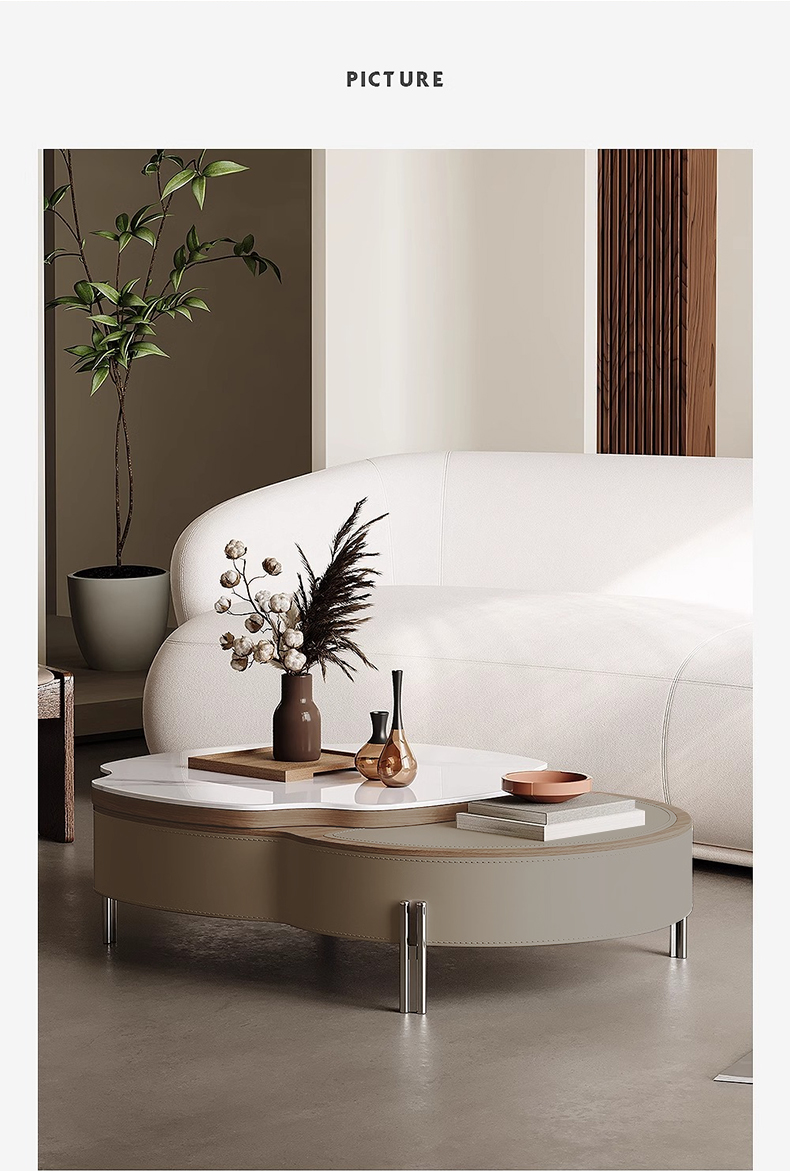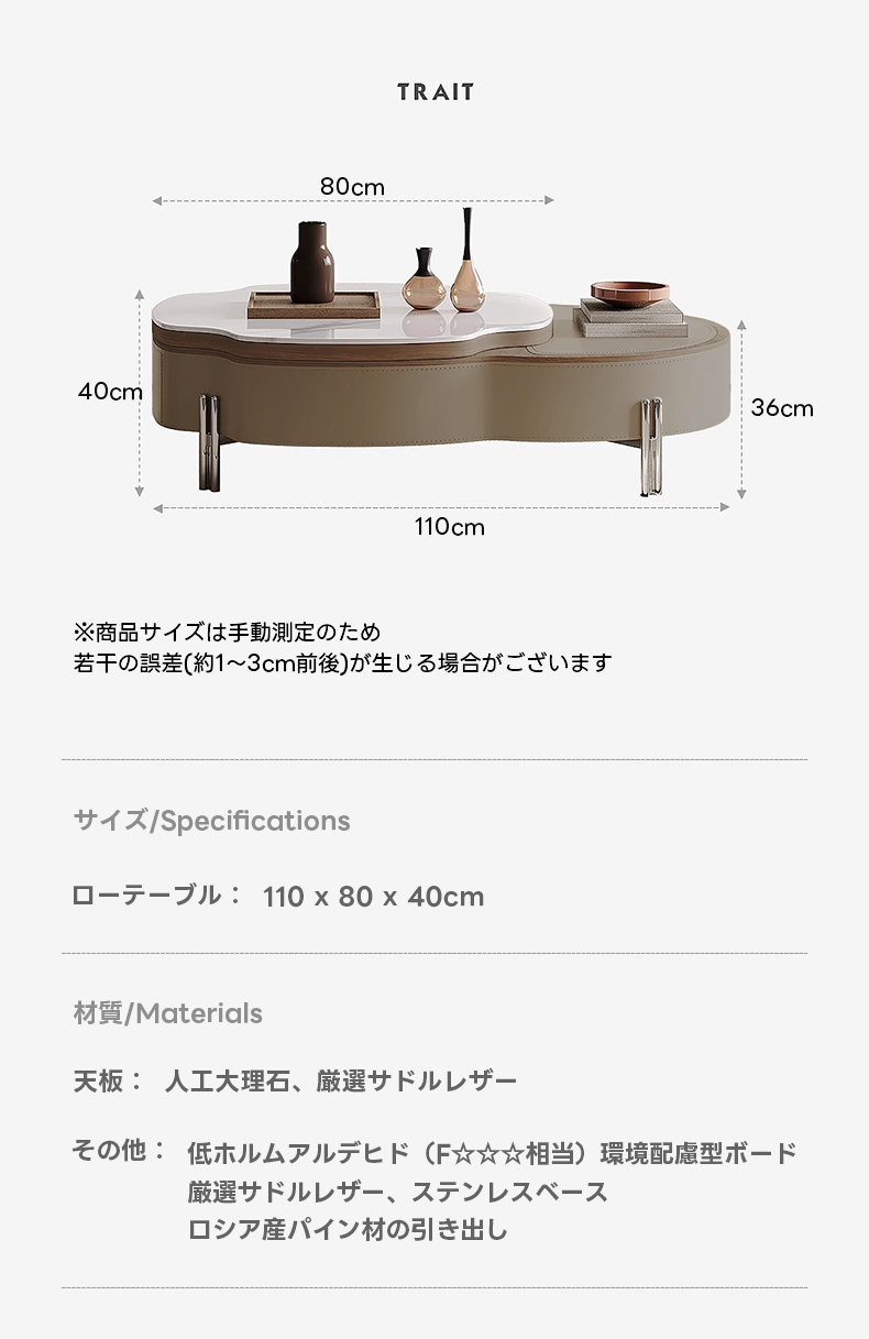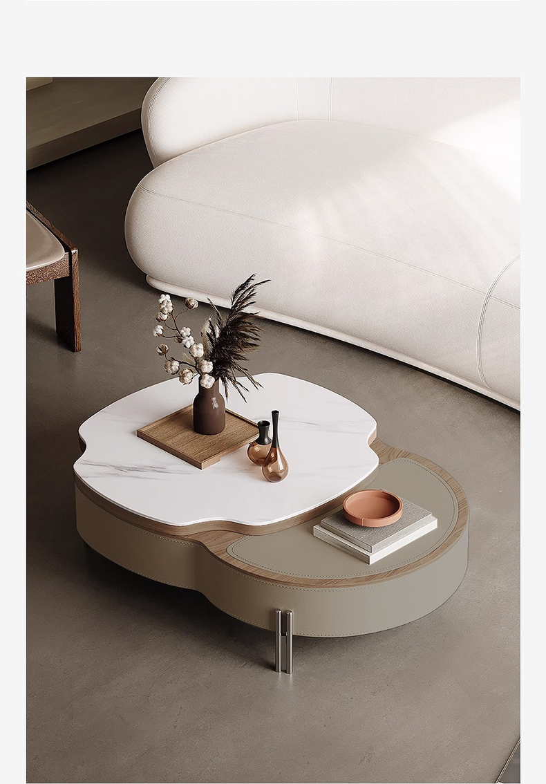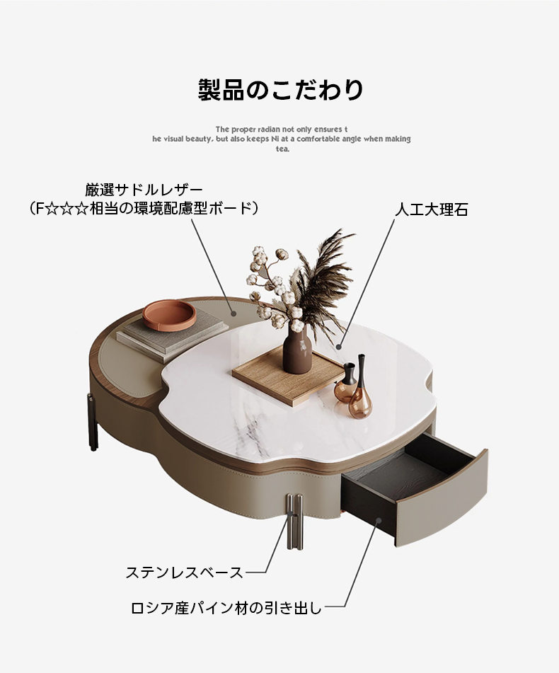 - 【高級感あふれるデザイン】この大理石調レザーローテーブルは、エレガントでモダンなデザインが特徴です。人工大理石の天板とサドルレザーが組み合わさり、リビングやダイニングを洗練された空間に演出します。