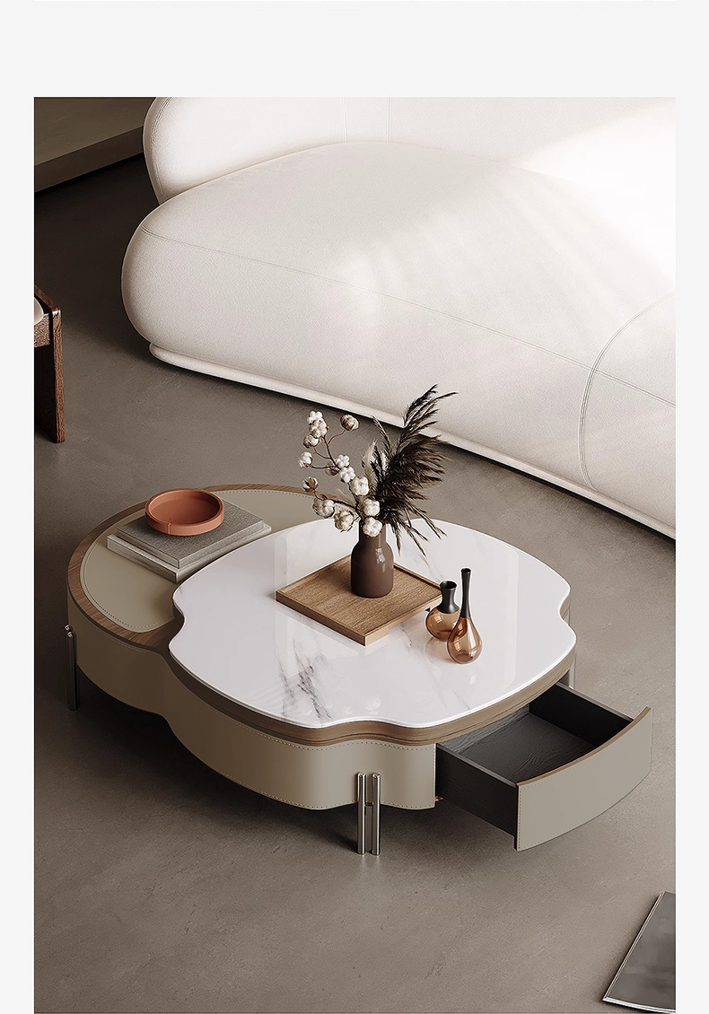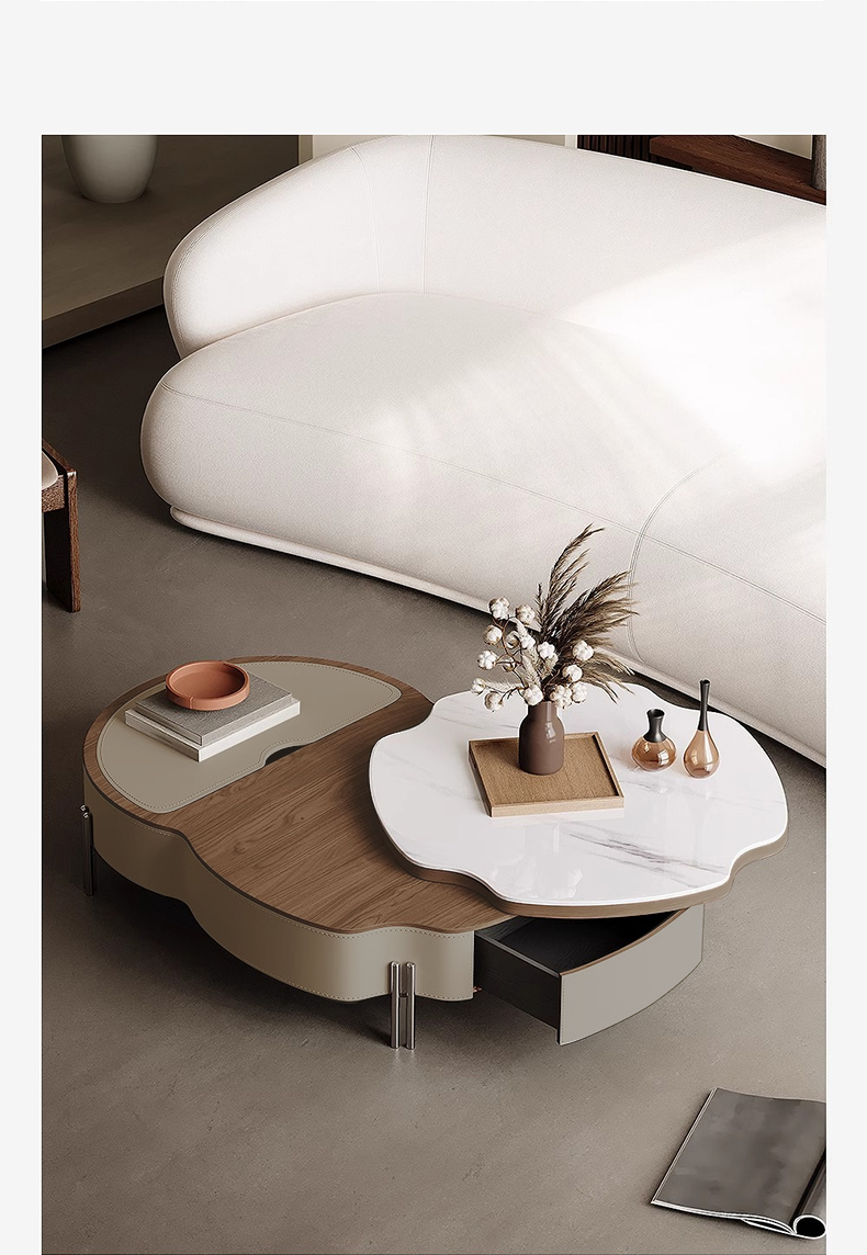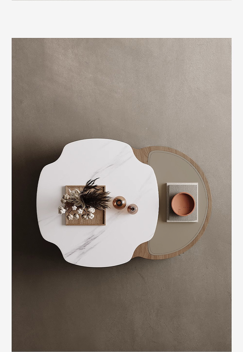 - 【高級感あふれるデザイン】この大理石調レザーローテーブルは、エレガントでモダンなデザインが特徴です。人工大理石の天板とサドルレザーが組み合わさり、リビングやダイニングを洗練された空間に演出します。