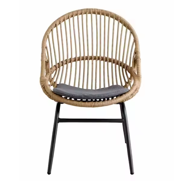- 【高品質素材で耐久性抜群】ラタンの自然な風合いとスチール脚の組み合わせが、耐久性と美しさを兼ね備えています。長時間の使用にも耐える頑丈な作りです。
