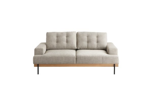 シンプルな見た目と上質な生地質感がありながら、木目とスチール脚のアクセントでバランスよく仕上がったカジュアルソファです。コンパクトな暮らしに少しゆとりを持てるソファはいかがでしょう。