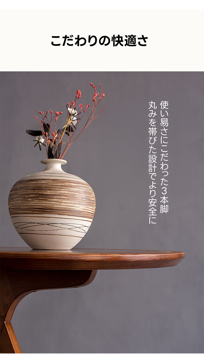 - 【独特なデザインと安定性】三角形の脚デザインが特徴で、シンプルながらも空間を引き立てます。3本脚の設計により、安定感があり、安全に使用できます。ダークブラウンとライトブラウンの2色展開で、お好みのインテリアに合わせて選べます。