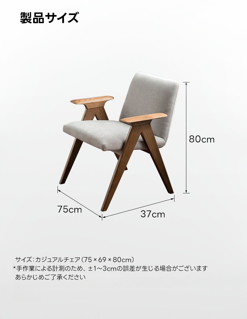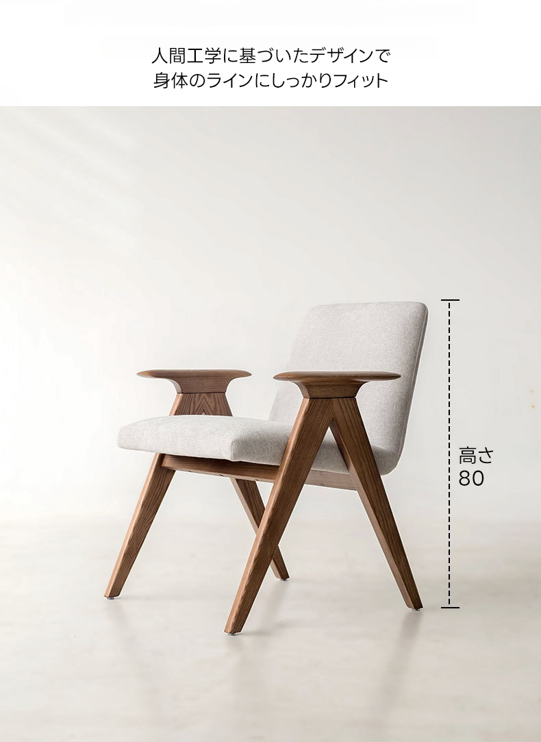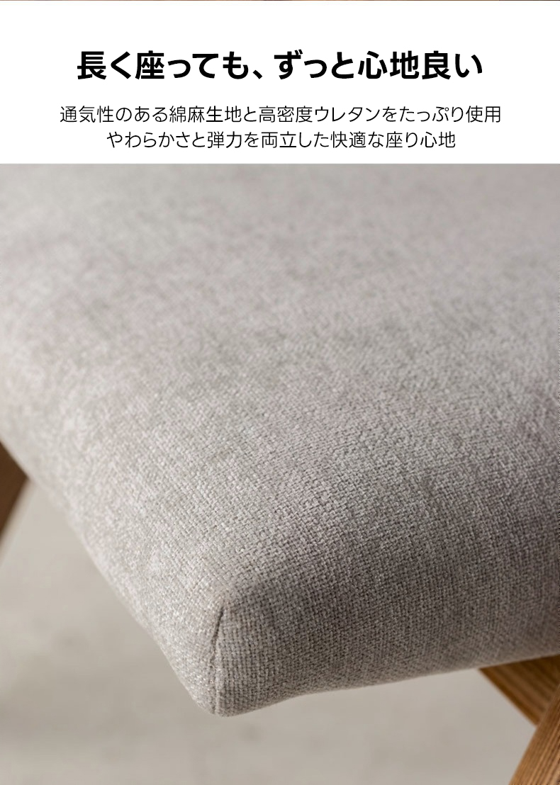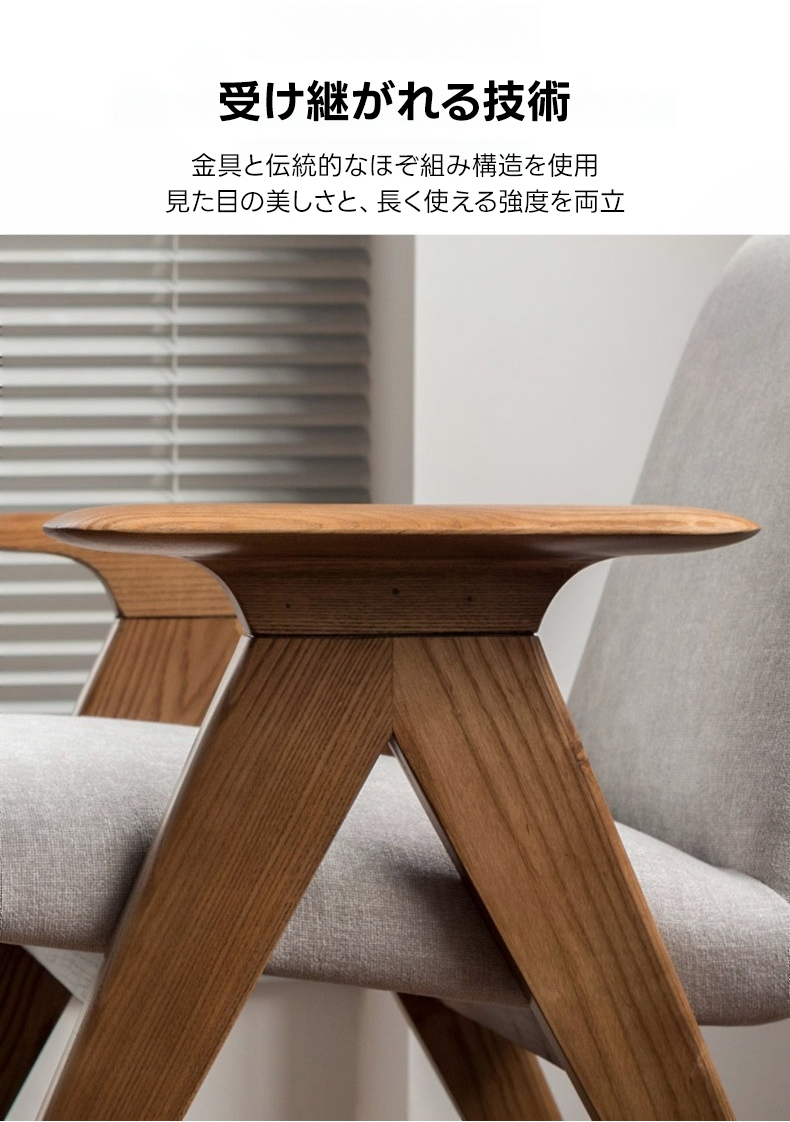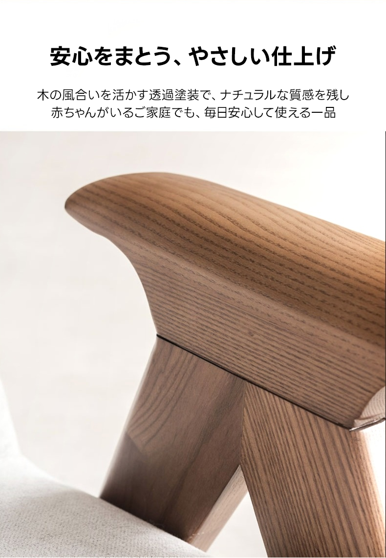 - 【高品質な素材とデザイン】フレームには耐久性に優れたホワイトアッシュ材を使用し、アーム部分は丁寧に磨き上げられた滑らかなカーブが特徴です。座面には通気性のあるコットンリネンと高密度ウレタンを使用し、快適な座り心地を提供します。