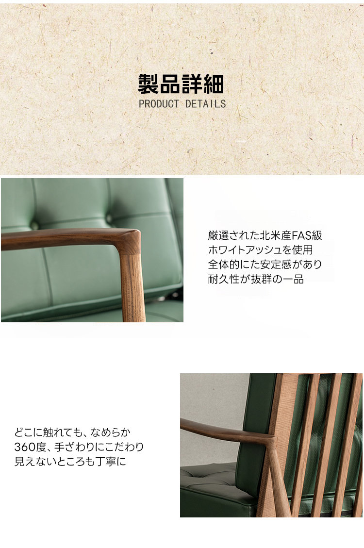 - 【高品質素材と快適な座り心地】アメリカ産ホワイトアッシュ材を使用したフレームと、ウレタンフォームを採用した座面が、快適な座り心地を提供します。PUレザーのクッションはお手入れが簡単で、見た目の美しさも兼ね備えています。