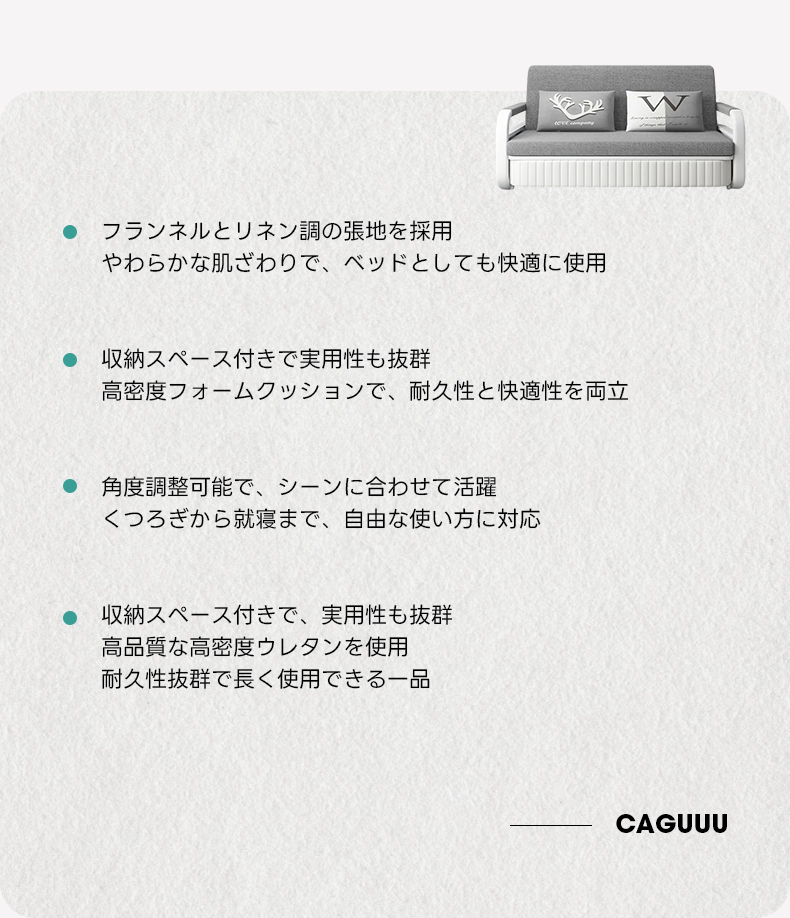 - 【高品質な素材と快適性】:フランネルとリネン調のファブリックを使用し、柔らかな肌触りで快適な座り心地と寝心地を提供します。高密度ウレタンフォームのクッションが使用されており、耐久性と快適性を両立しています。