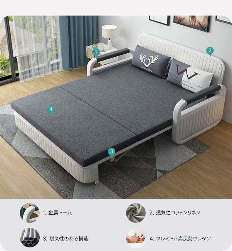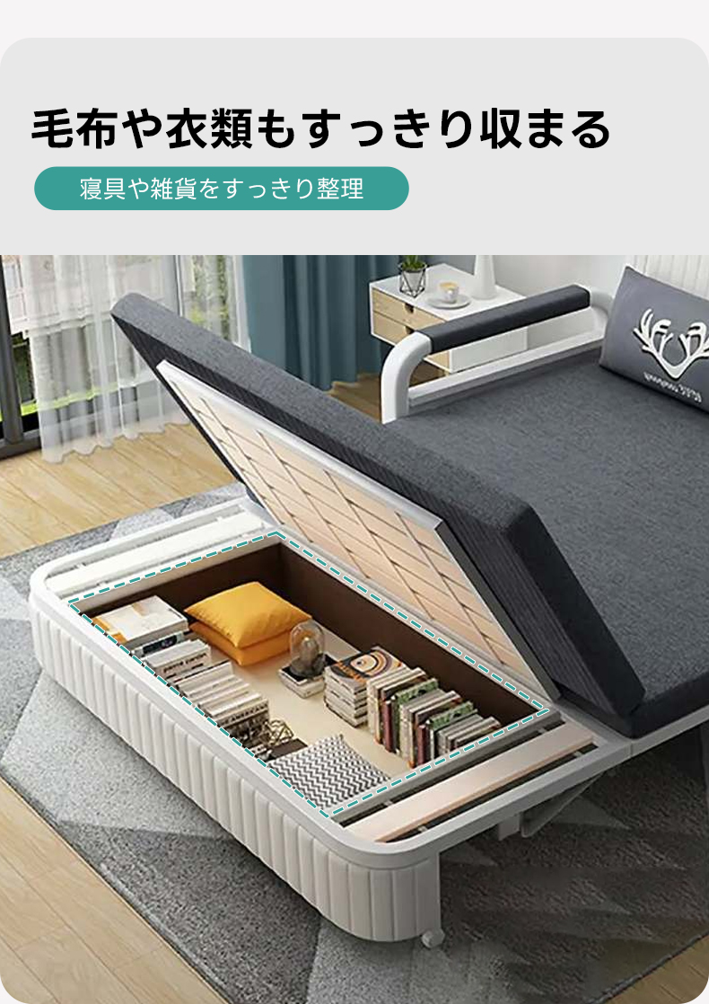 - 【多機能デザインで快適な生活空間を実現】:このソファベッドは、ソファからベッドへの簡単な変換が可能で、リビングや寝室にぴったり。収納スペースが内蔵されており、毛布や衣類をすっきりと整理できます。キャスター付きで移動も簡単、床を傷つける心配がありません。