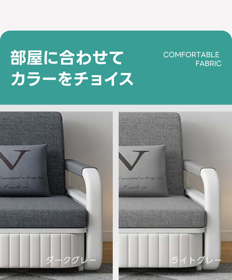 - 【シンプルモダンなデザインでどんなインテリアにもマッチ】:ライトグレーとダークグレーの2色から選べるこのソファベッドは、シンプルでモダンなデザインが特徴。どんなインテリアにもフィットし、一人暮らしやカップル、ファミリーに最適です。