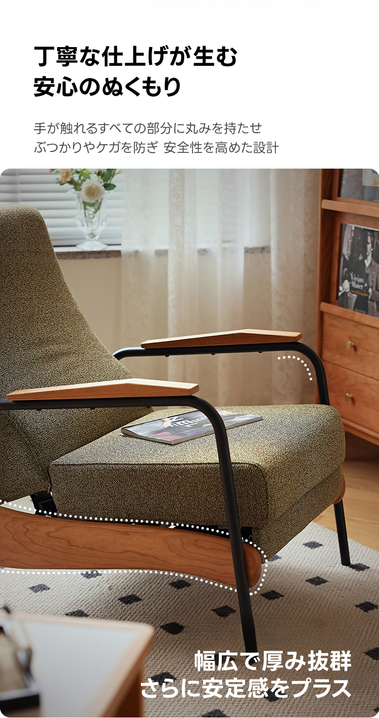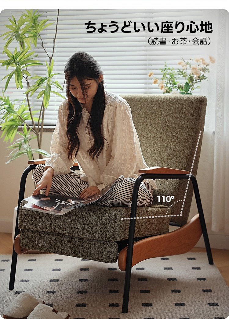 - 【多段階リクライニング機能】和モダンリクライニングソファは、110度から140度までの多段階リクライニング機能を備え、読書、リラックス、昼寝など様々なシーンに対応します。快適な座り心地を追求し、長時間の使用でも疲れにくい設計です。