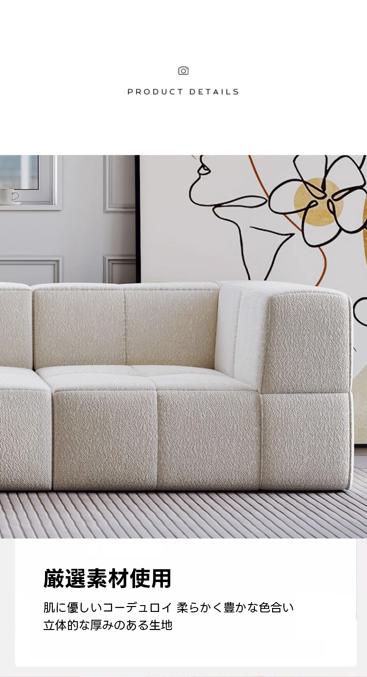 - 【モジュール式デザインで自由自在】このソファは、一人掛け、二人掛け、三人掛け、オットマンなど、様々な組み合わせが可能なモジュール式デザインを採用。リビングのスペースやライフスタイルに応じて、自由にレイアウトを変更できます。カスタマイズ可能な設計により、あなたの理想の空間を実現します。