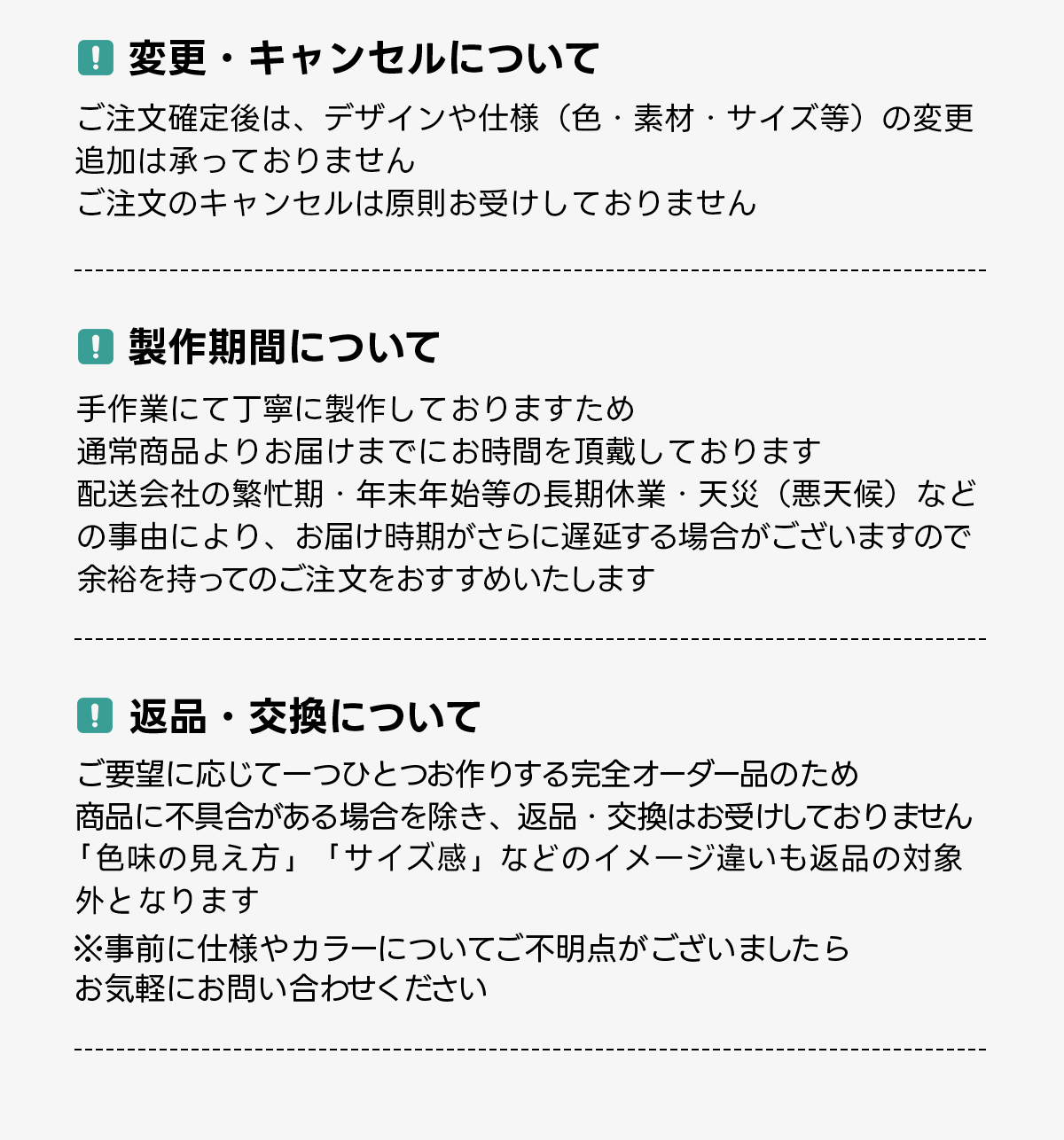 ※オーダーメイド商品のため、通常の商品よりもお届けにお時間をいただく場合がございます。あらかじめご了承ください。