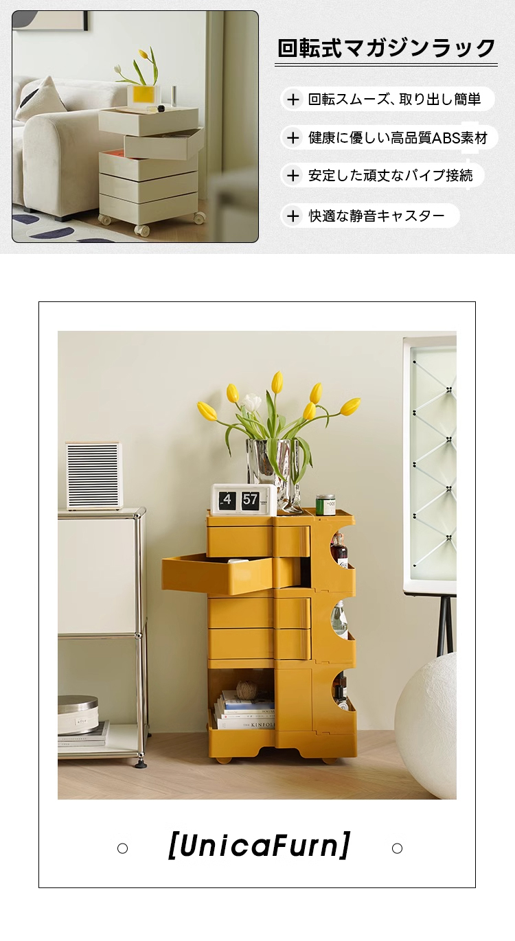 - 【スムーズな回転式デザイン】この回転式マガジンラックは、スムーズな回転機能を備えており、必要なものを簡単に取り出せます。独創的な開閉デザインにより、膝を使って楽に開閉が可能です。