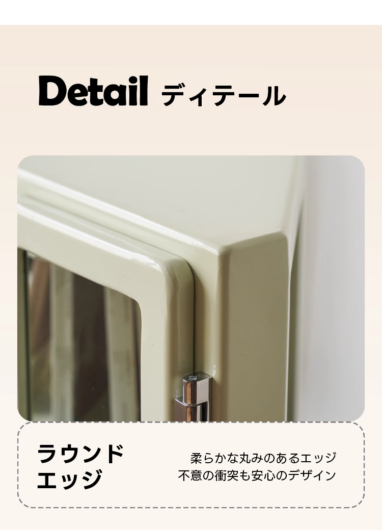 - 【高品質な素材とデザイン】健康に優しい焼付塗装が施され、無臭で高防水・高耐久性を実現しています。金属製の取っ手と強化ガラスの扉が、耐久性とスタイリッシュな外観を提供します。ラウンドエッジのデザインで、安全性を考慮しつつ、柔らかな印象を与えます。