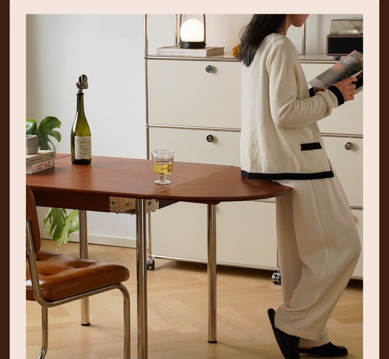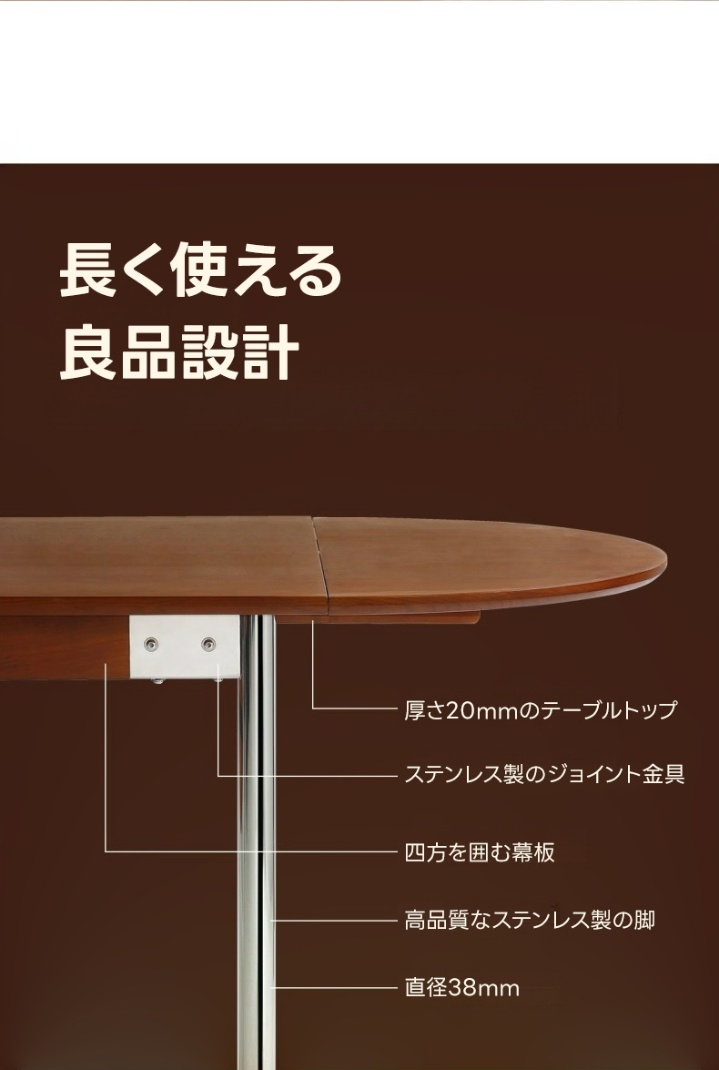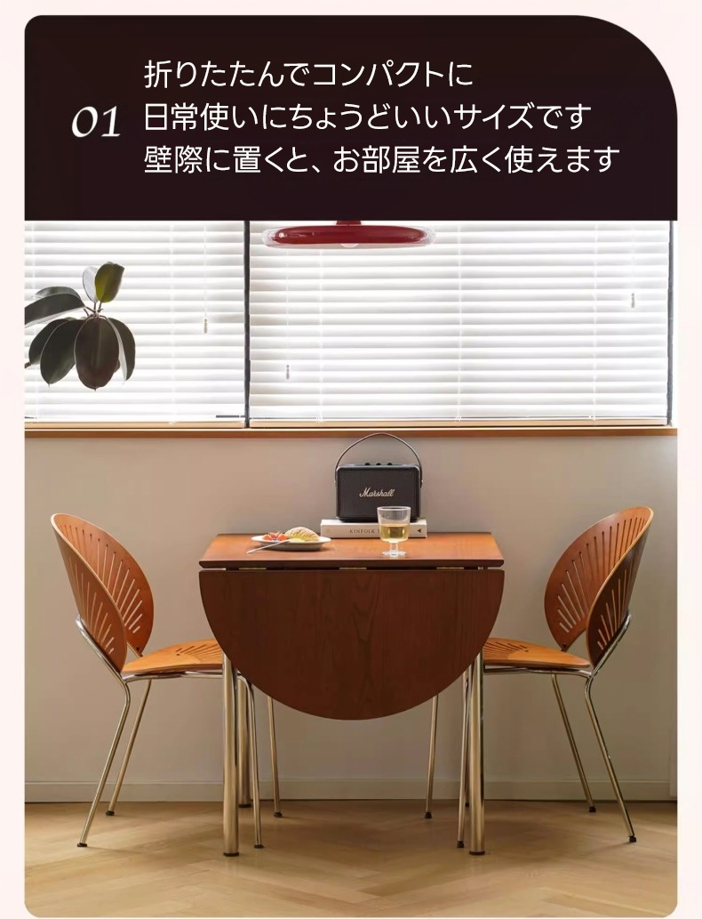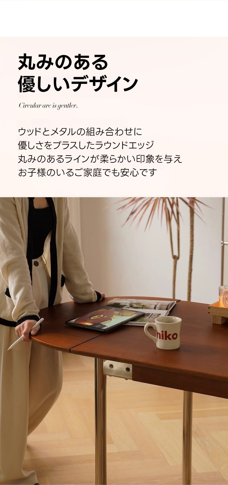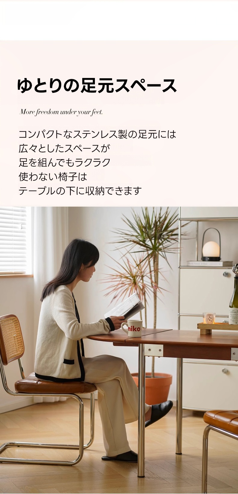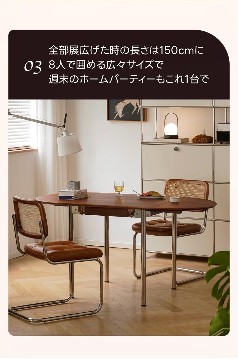 - 【多様な使用シーンに対応】片方を広げると112.5cm、全部広げると150cmの長さになり、8人まで囲める広さでホームパーティーにも対応します。カップルやファミリーに最適なダイニングテーブルです。