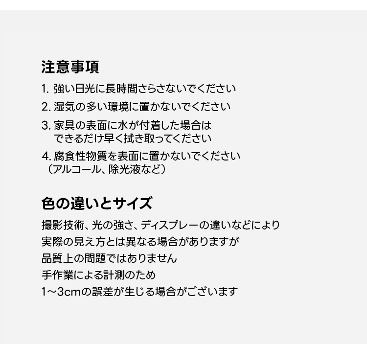 - 【安心のサポート体制】組立品として提供されているため、設置も簡単で安心してご利用いただけます。家具の表面に水が付着した場合は、早めに拭き取ることで長持ちさせることができます。