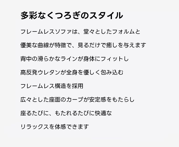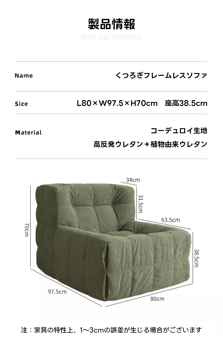 - 【快適な座り心地】:くつろぎフレームレスソファは、高反発ウレタンと植物由来のウレタンを使用し、圧力を効果的に和らげます。フレームレス構造により、安定感のある座り心地を実現。長時間座っても快適で、リラックスした時間を提供します。