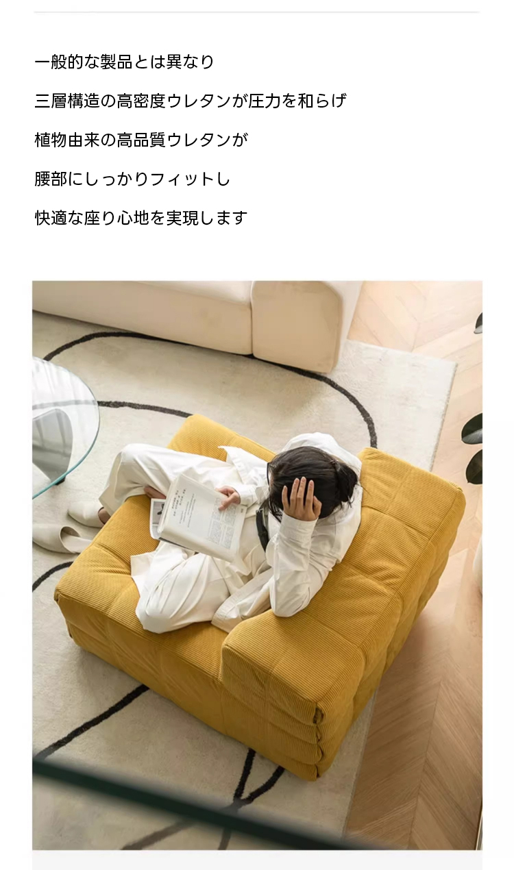 - 【多様な使用シーン】:このソファは、リビングルームに最適なローソファで、カップルやファミリーにぴったりです。コンパクトなサイズながらも広々とした座面を持ち、どんなインテリアにもマッチします。シンプルでモダンなデザインが、空間をより魅力的に演出します。