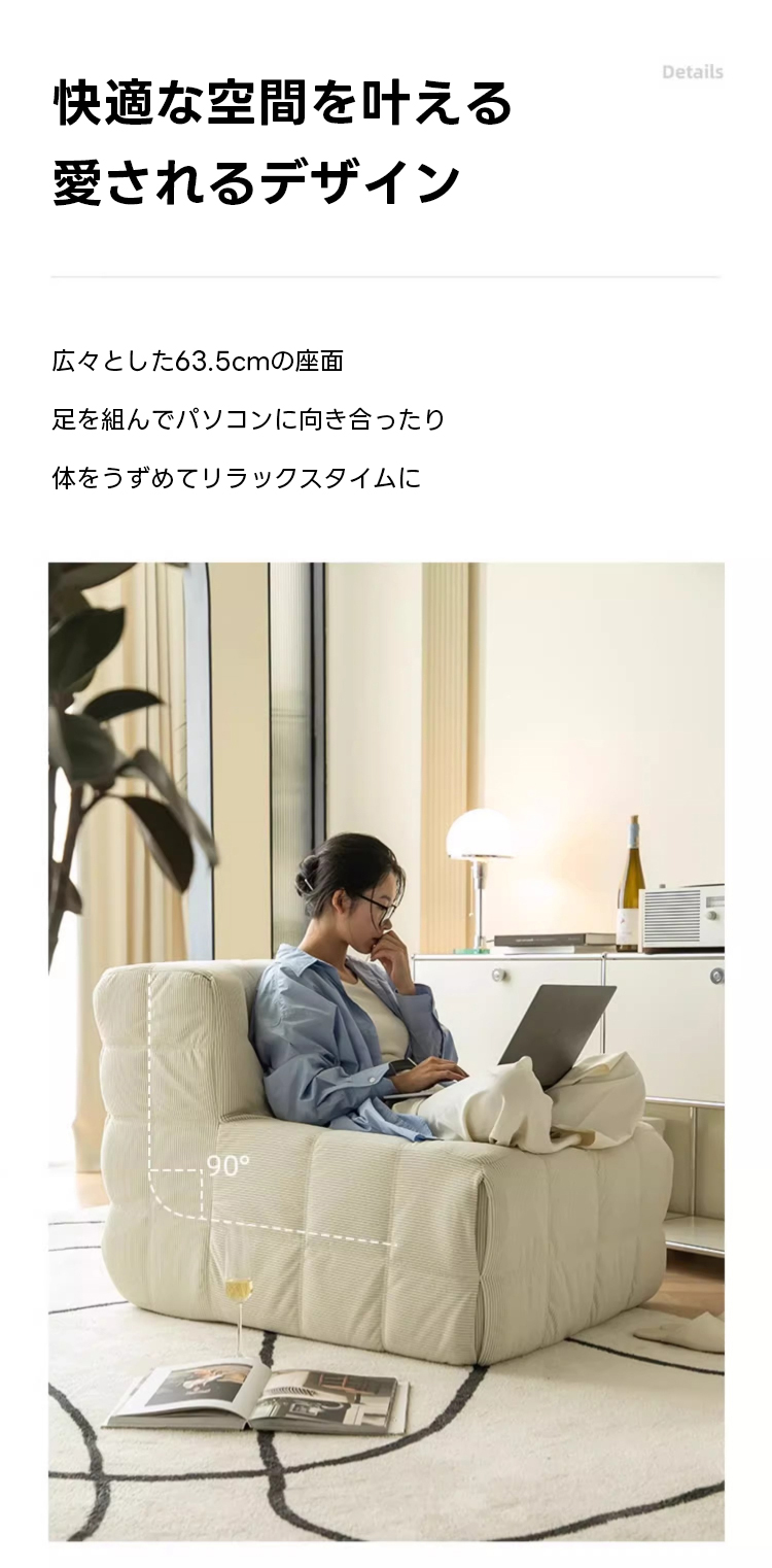 - 【リラックスした体験】:広々とした座面と滑らかな背中のラインが、体にフィットし、全身を優しく包み込みます。座るたびにもたれかかるたびに、快適なリラックスを体感できます。日常の疲れを癒す、理想的なソファです。
