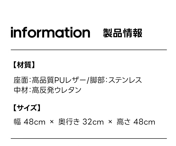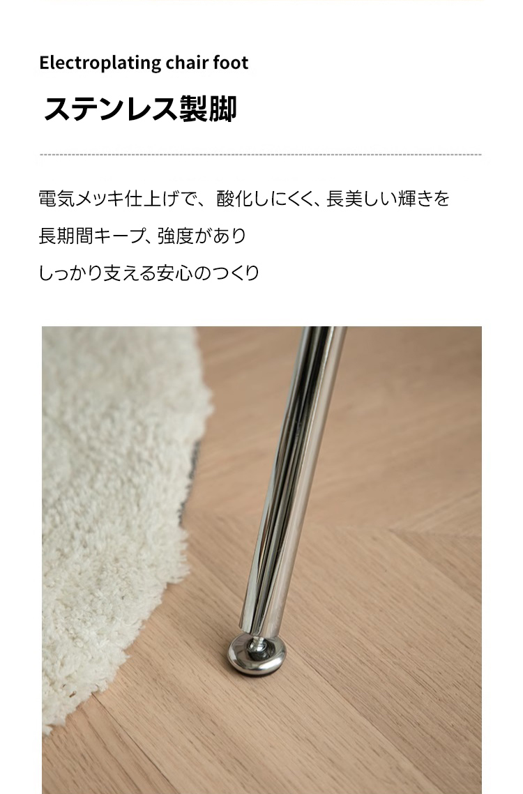 - 【高品質な素材と耐久性】:座面に使用されているPUレザーは、柔らかさと耐久性を兼ね備えています。脚部はステンレス製で、電気メッキ加工により酸化しにくく、長期間使用しても美しさを保ちます。滑り止め付きで、安心してお使いいただけます。