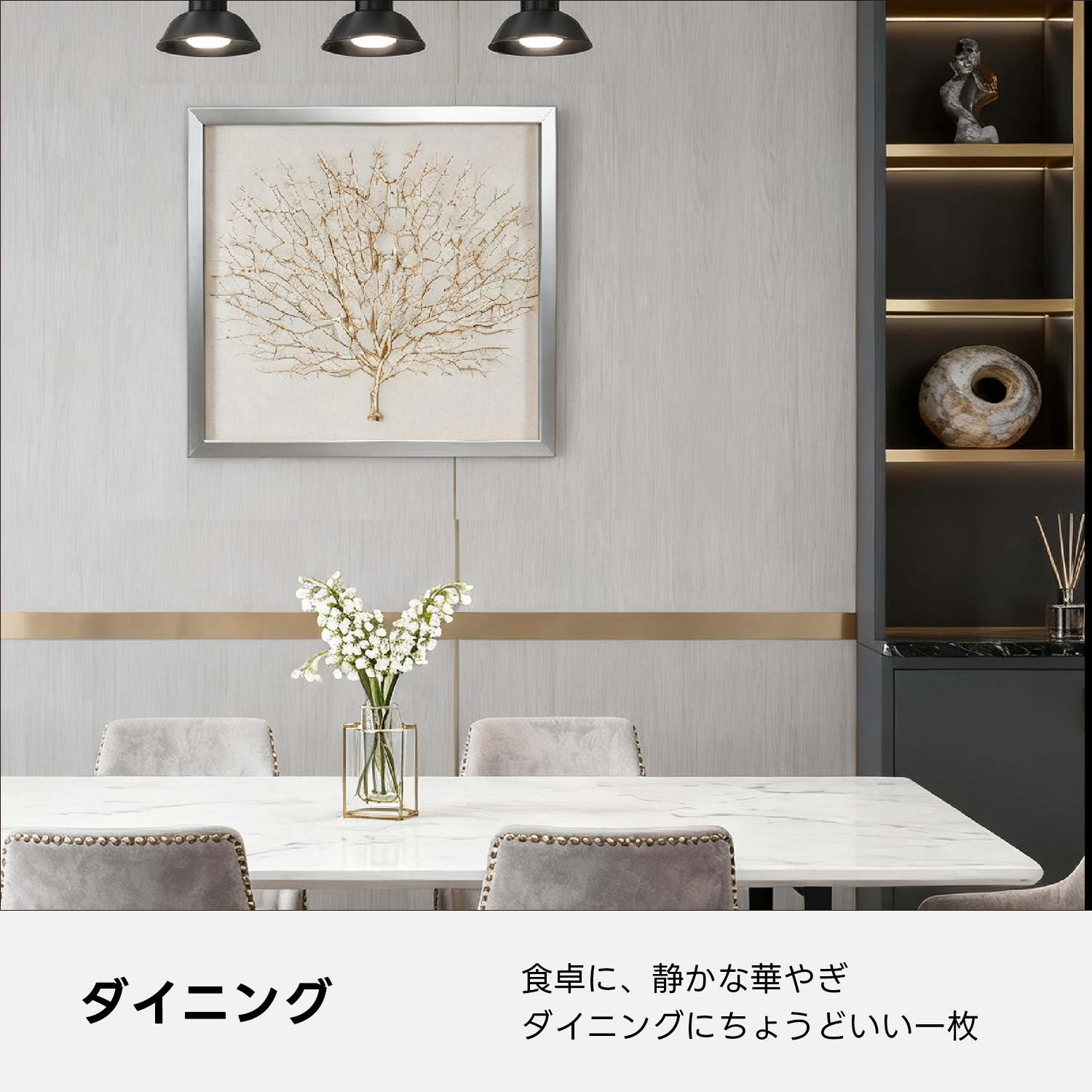 - 【多様な場所に適したデザイン】:リビングでは品のあるアクセントとして、ダイニングでは食卓に華やかさを加え、ホームオフィスでは静かな存在感を持ち、集中を妨げません。また、玄関に飾ることで訪れる人々に洗練された印象を与えます。