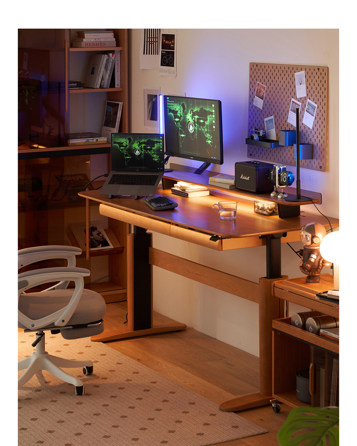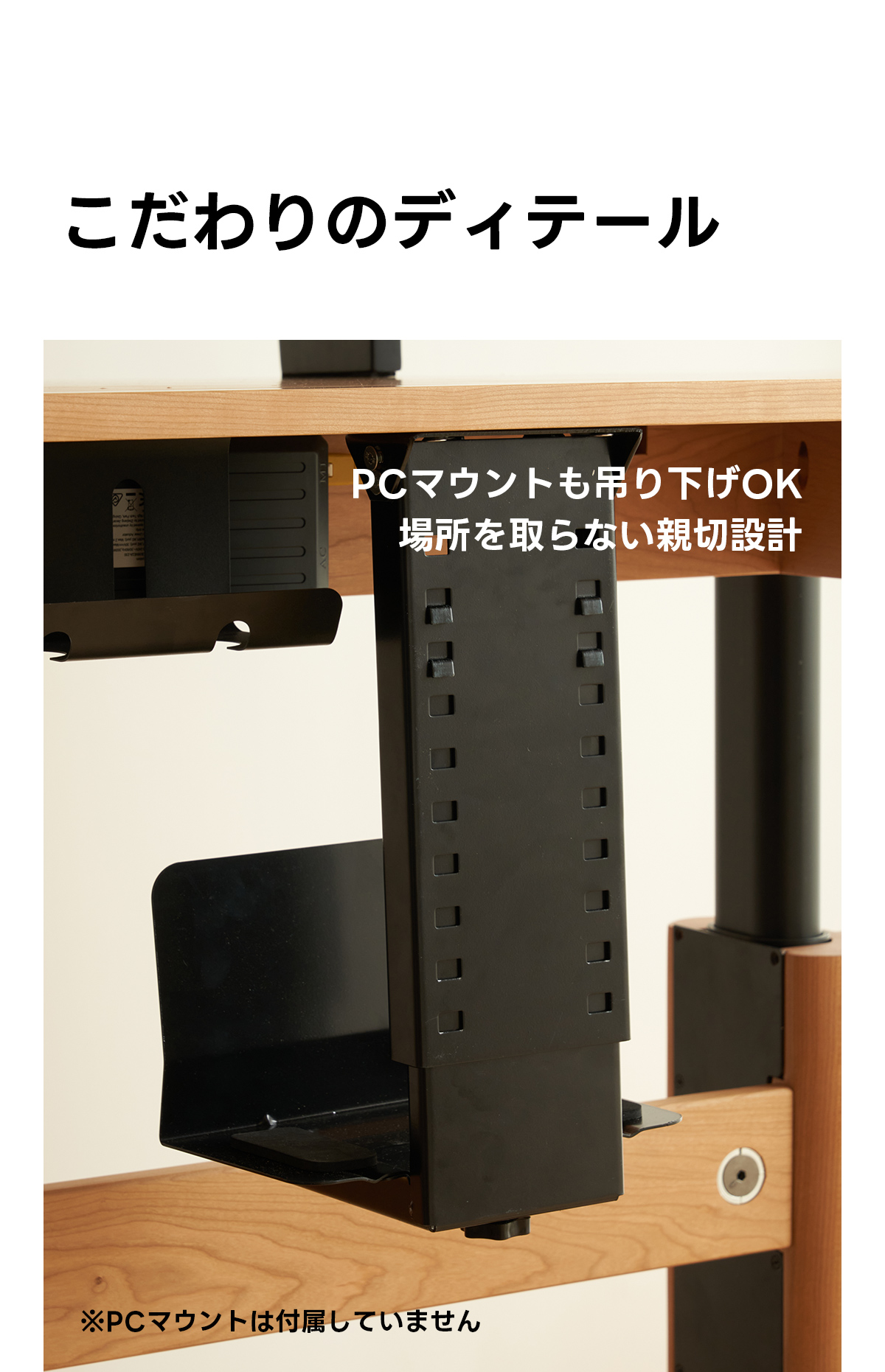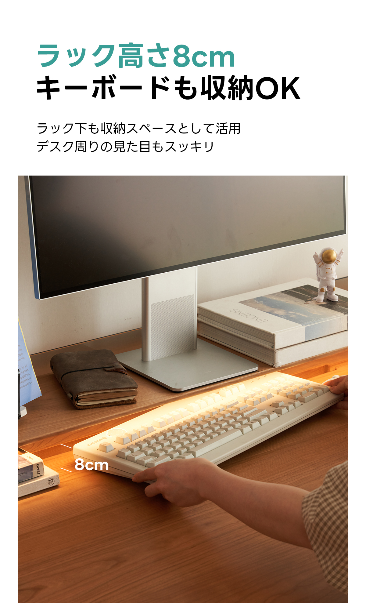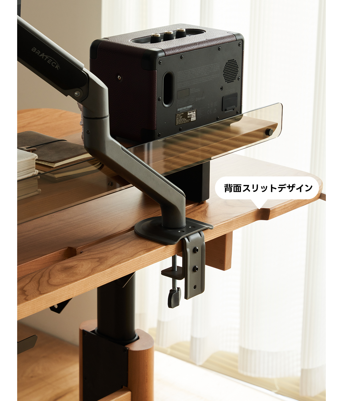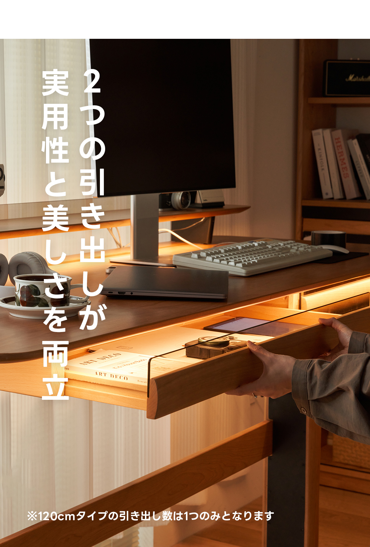 - 【便利な収納機能】:天板下には埋め込み式の引き出しがあり、日常品やデジタルガジェットをすっきりと収納できます。デスク用上置き棚も備えており、モニターやスピーカーの設置に便利です。