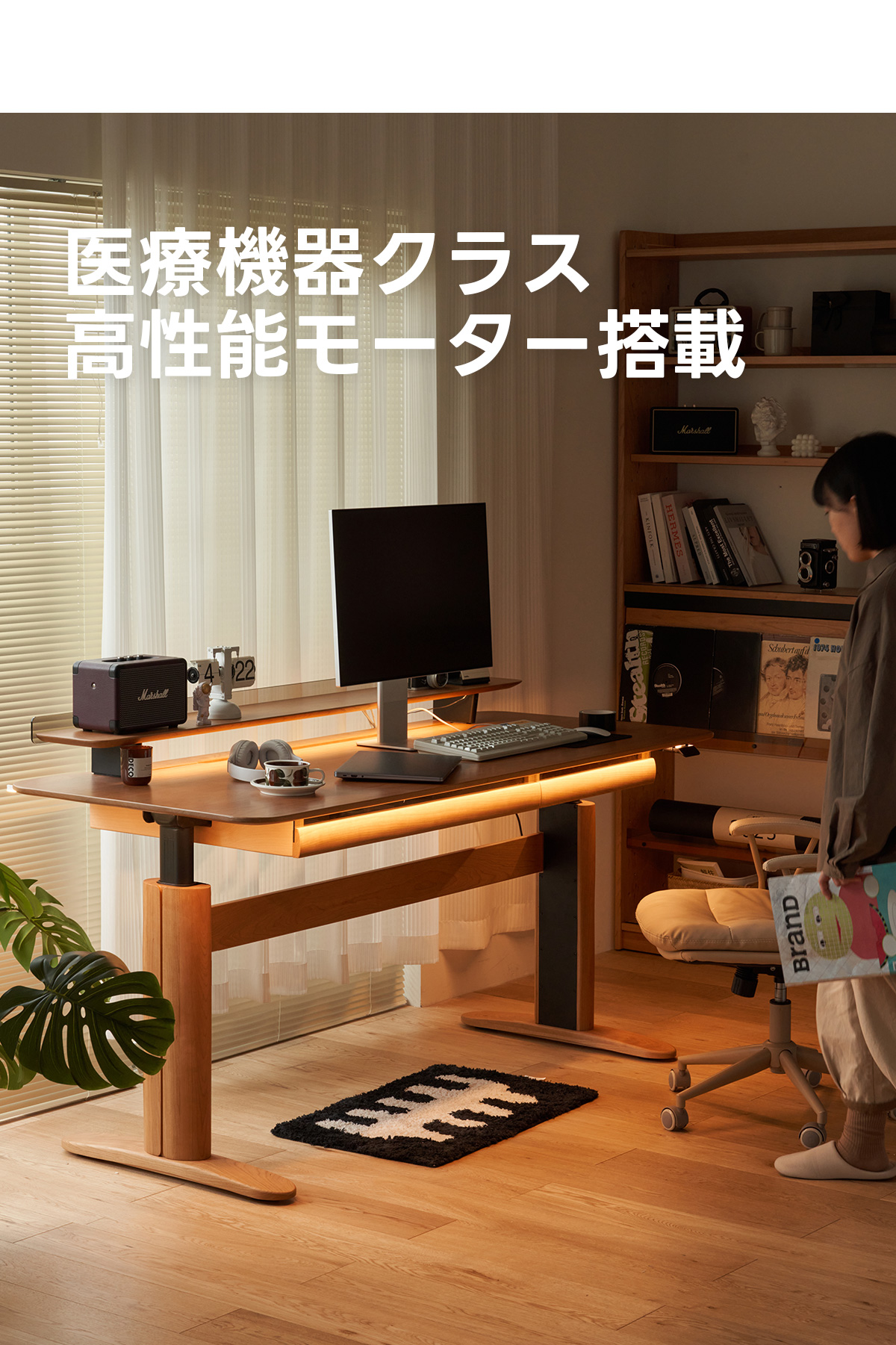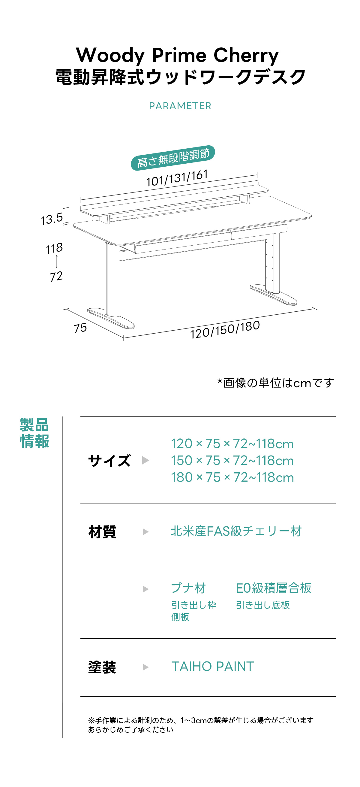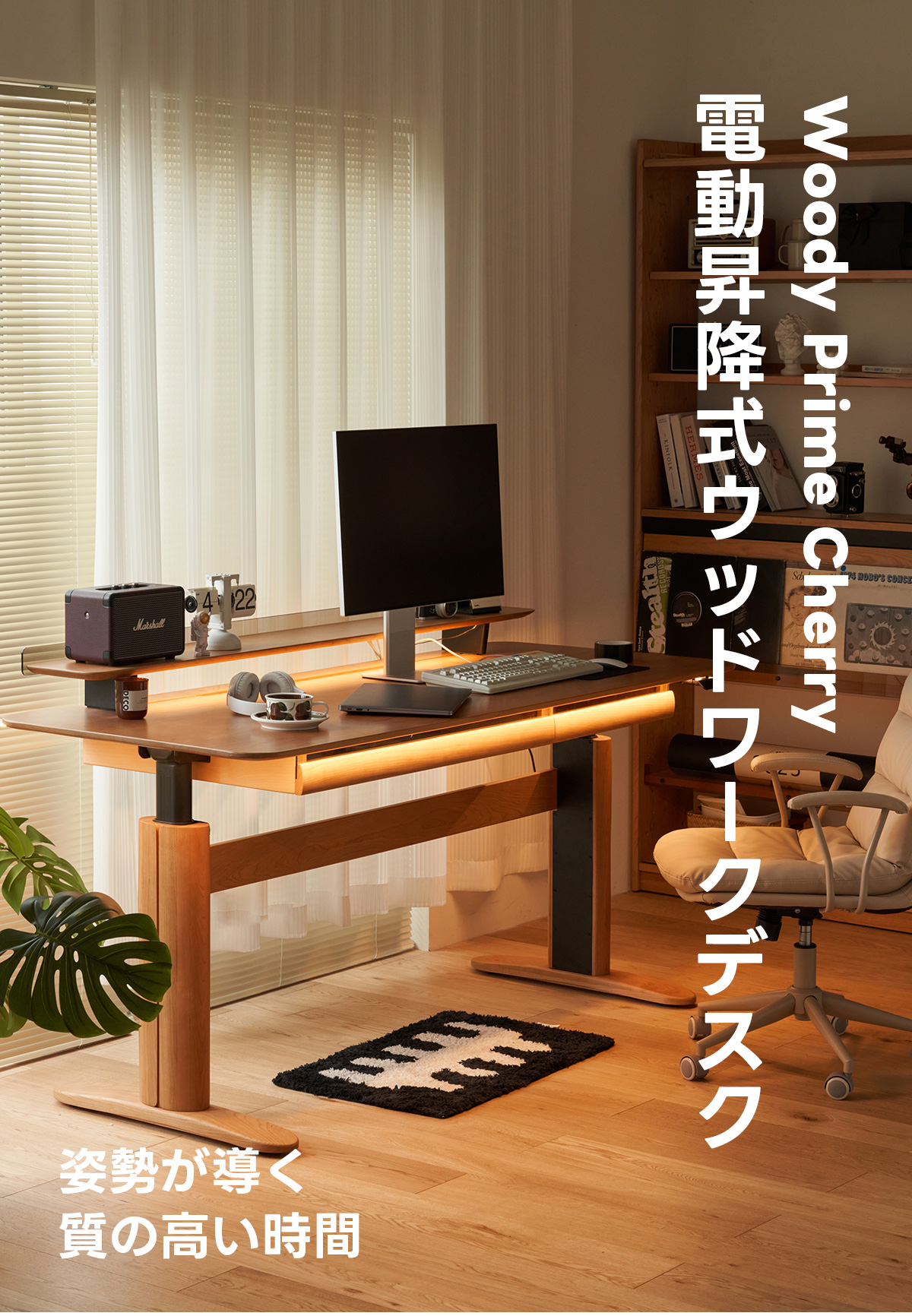 Woody Prime Cherry 電動昇降式ウッドワークデスク【組立サービス付】