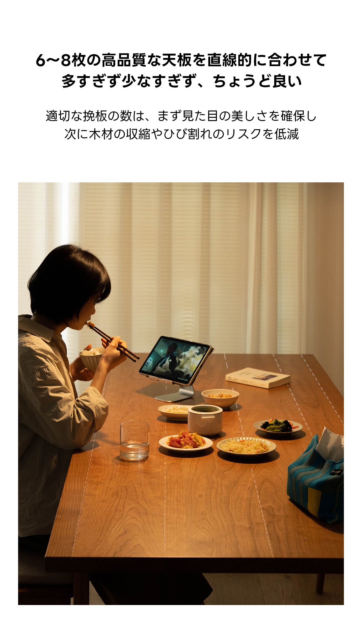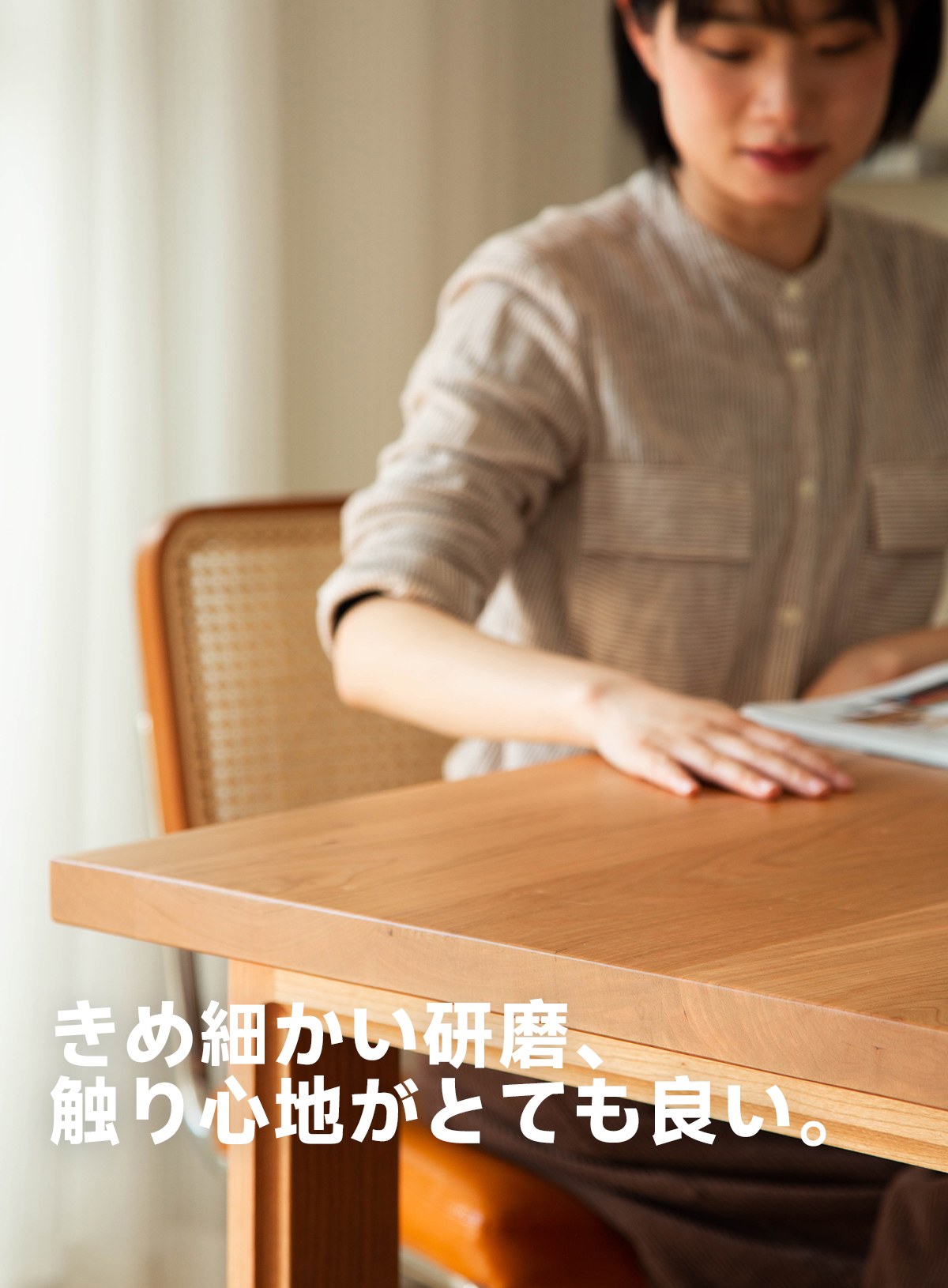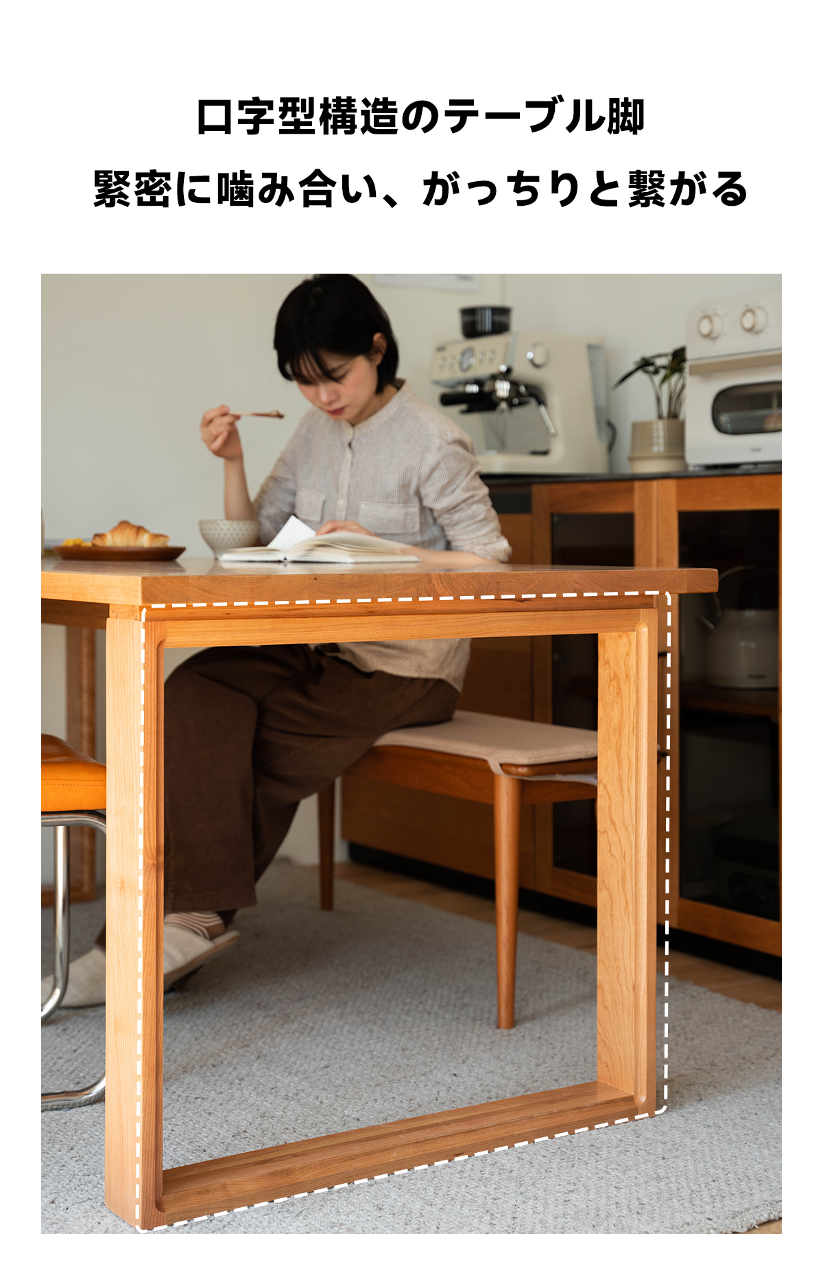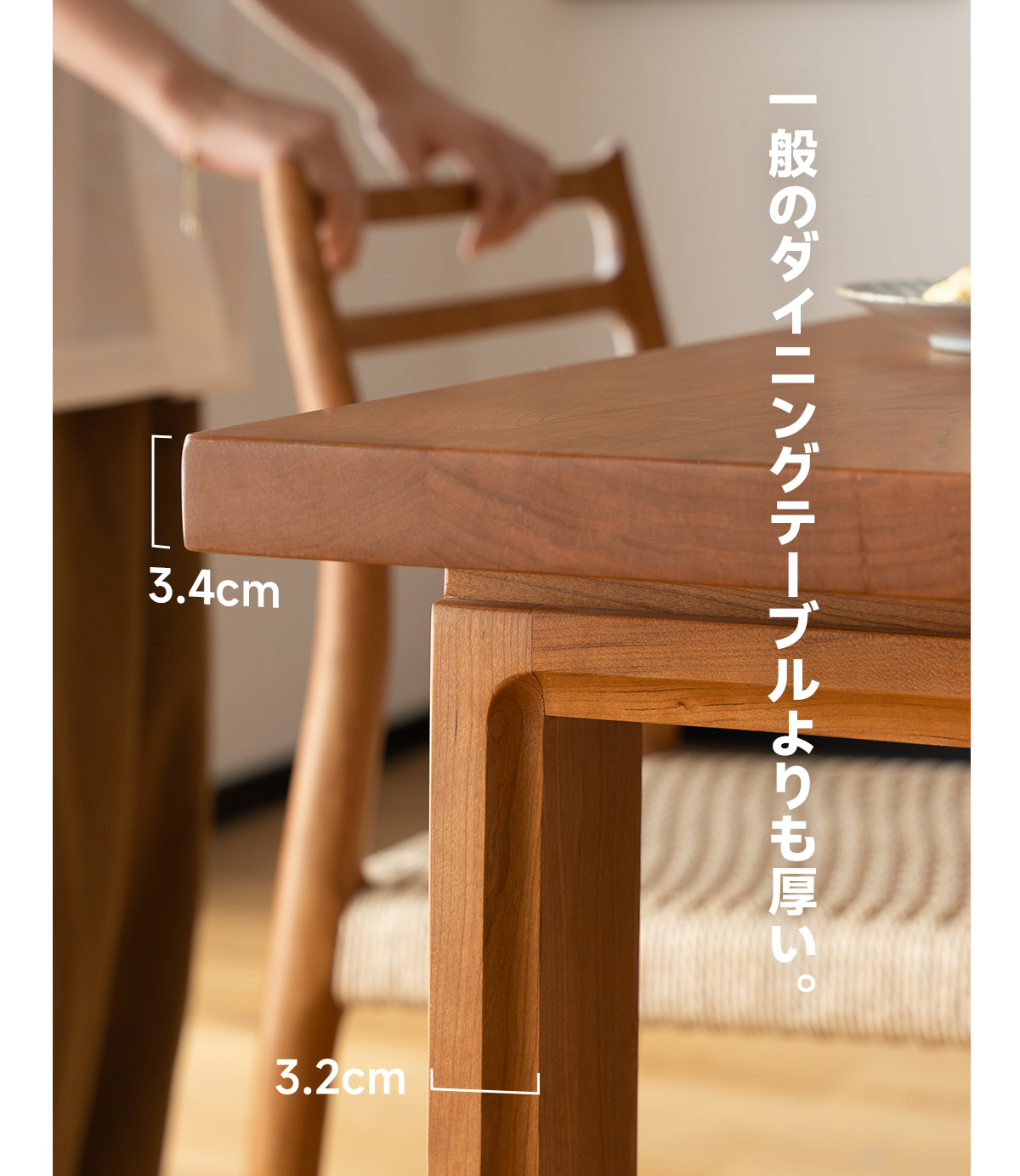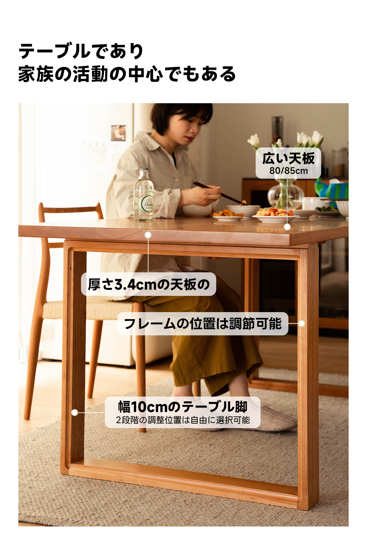 - 【高品質チェリー材使用】:このダイニングテーブルは、FAS級北米産チェリー材を使用しており、色ムラや節が少ない美しい仕上がりです。時間とともに深い色合いに変化し、長く愛用できる一品です。