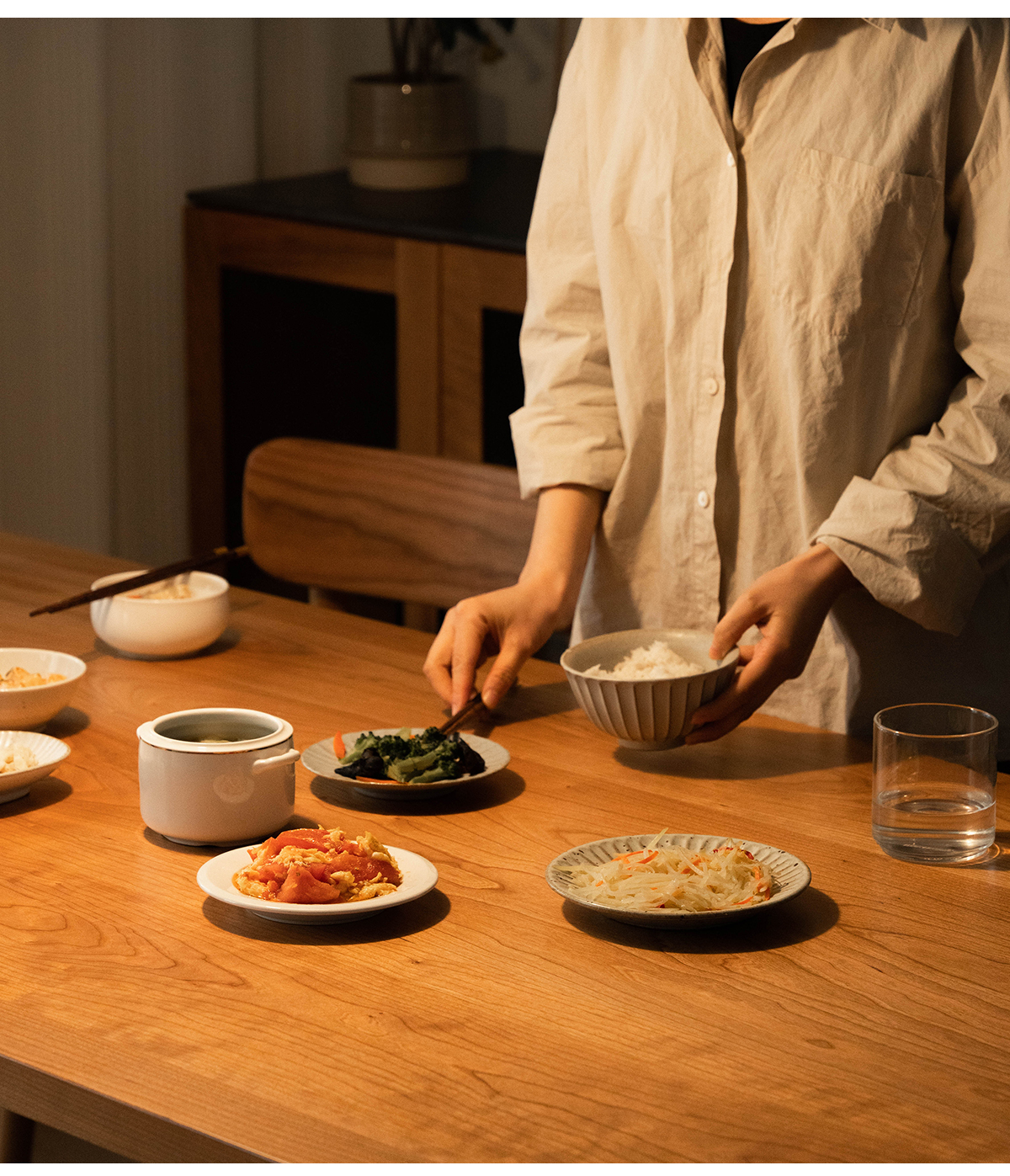 チェリーウッドロングダイニングテーブル