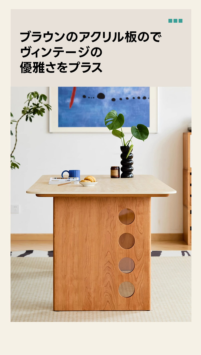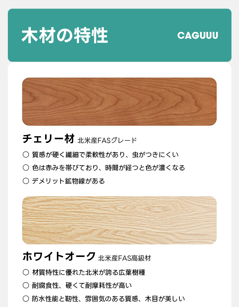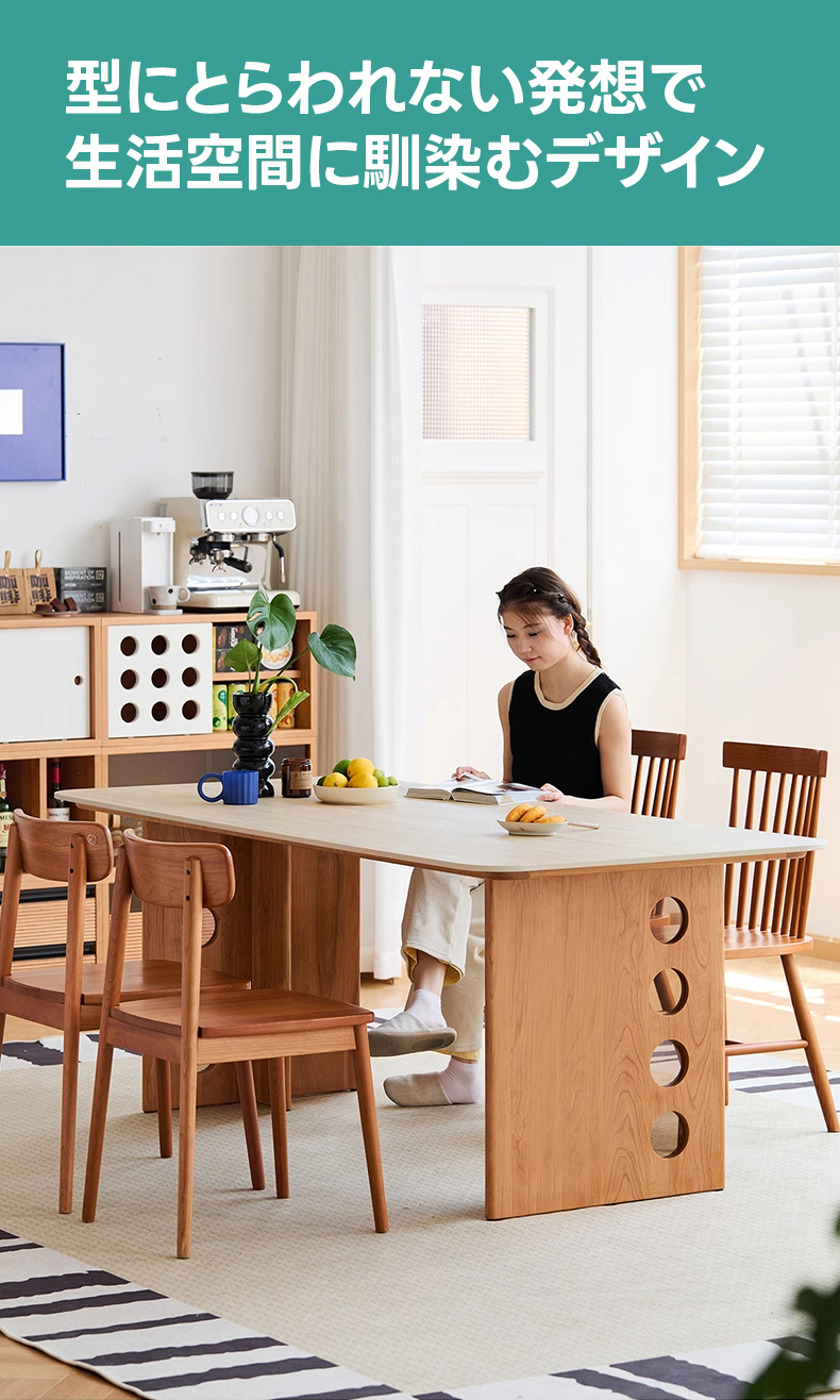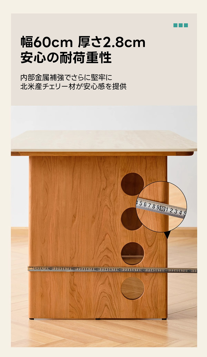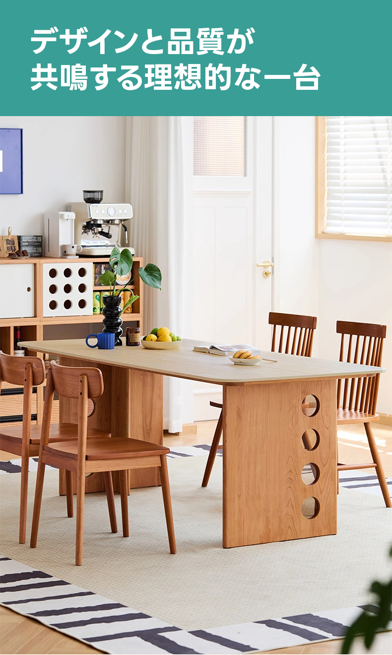 - 【高品質な素材とデザイン】:北米産FASグレードのチェリー材を使用し、耐久性と美しい木目を兼ね備えています。脚部のデザインはヴィンテージとモダンの融合で、空間に洗練された印象を与えます。