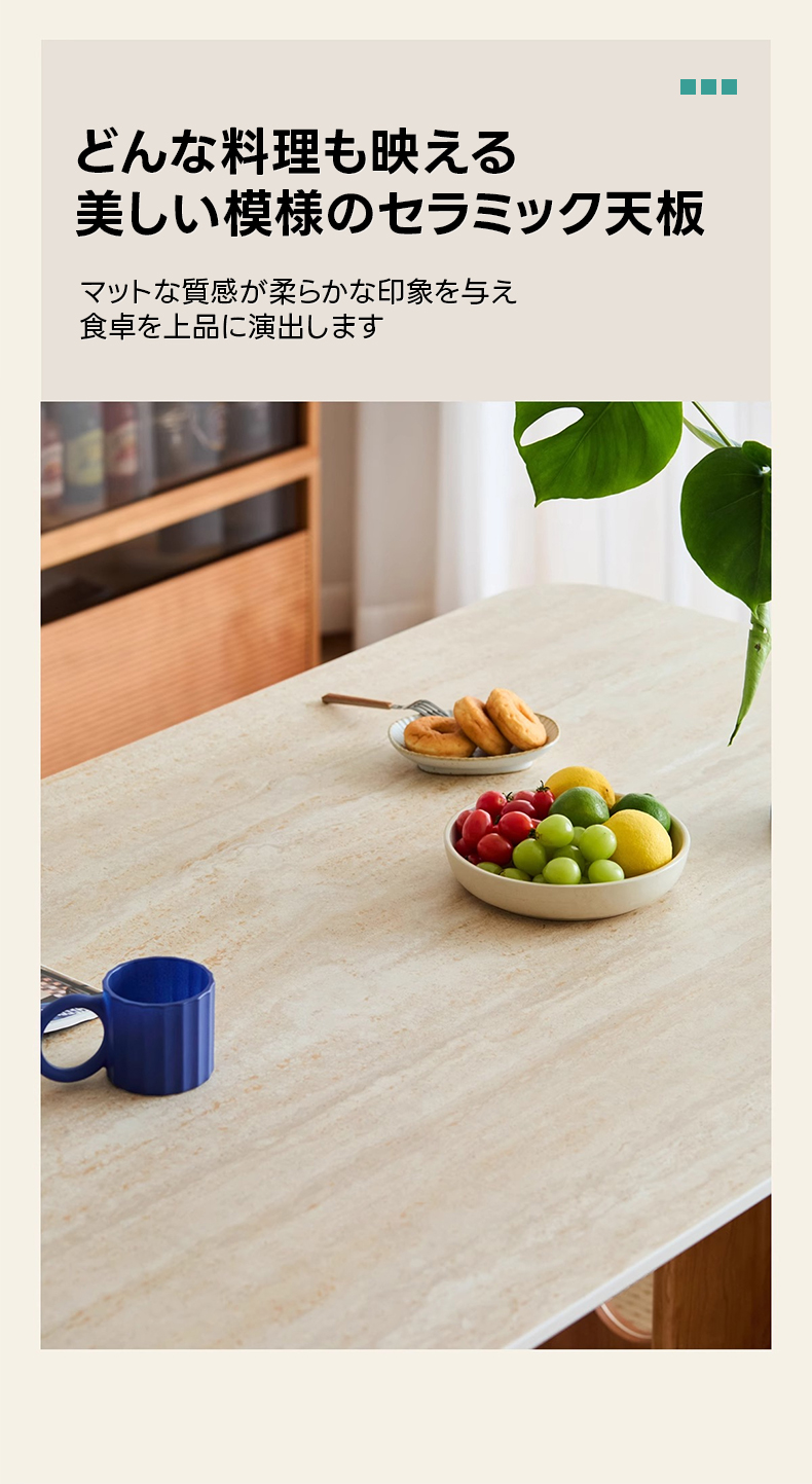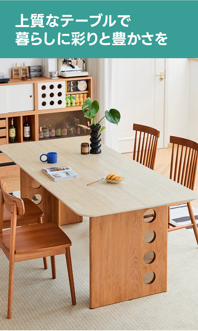 - 【優れた機能性とデザイン性】:このダイニングテーブルは、チェリー材とセラミックの組み合わせにより、ヴィンテージ感とモダンなデザインを実現。防水性と耐傷性に優れたトラバーチン模様のセラミック天板が特徴で、日常の使用においても安心です。