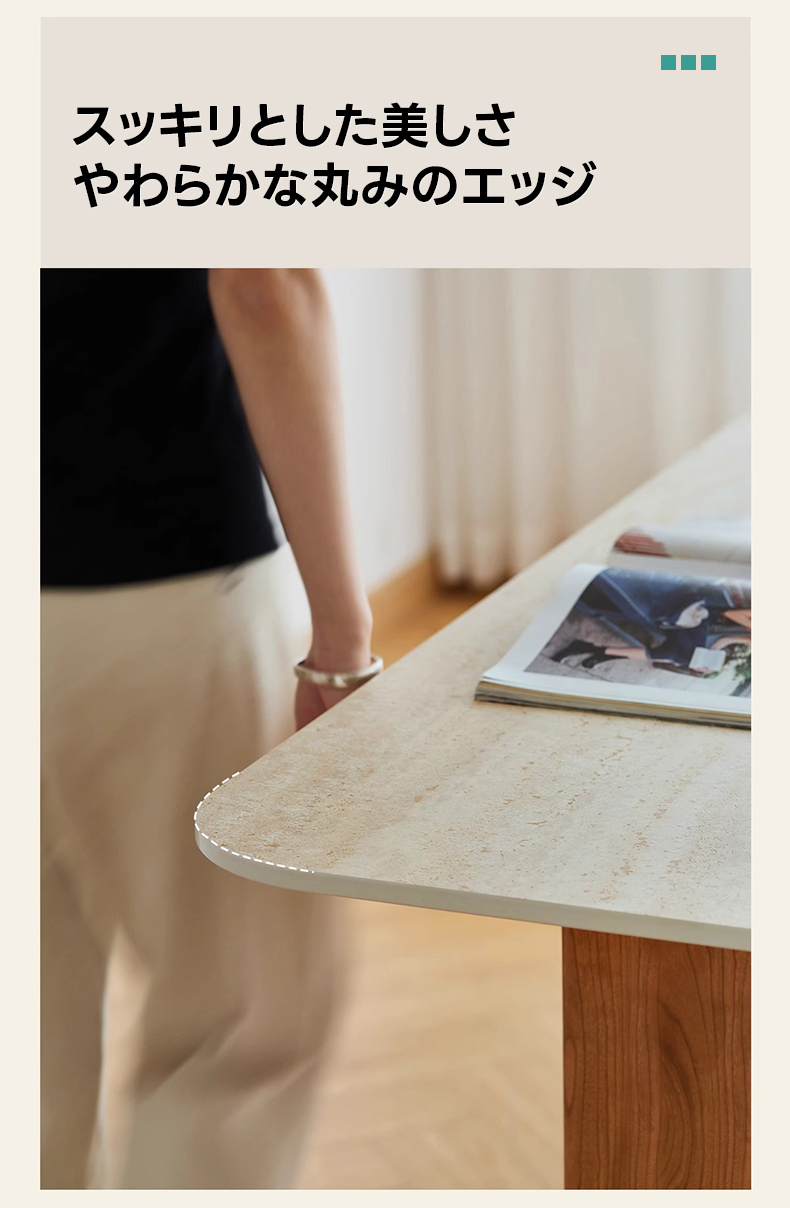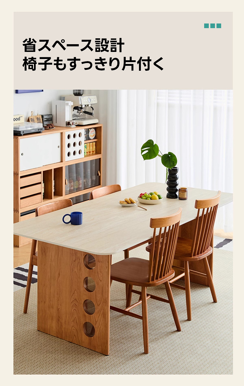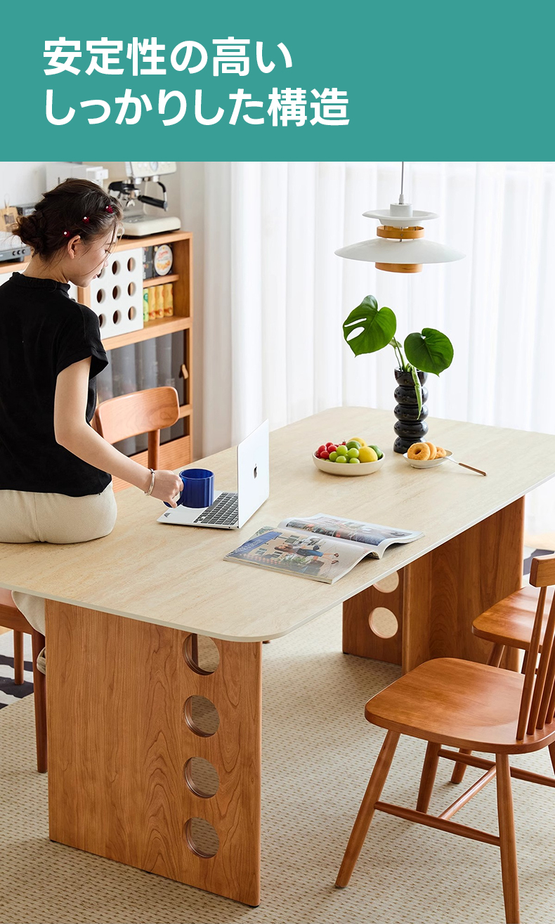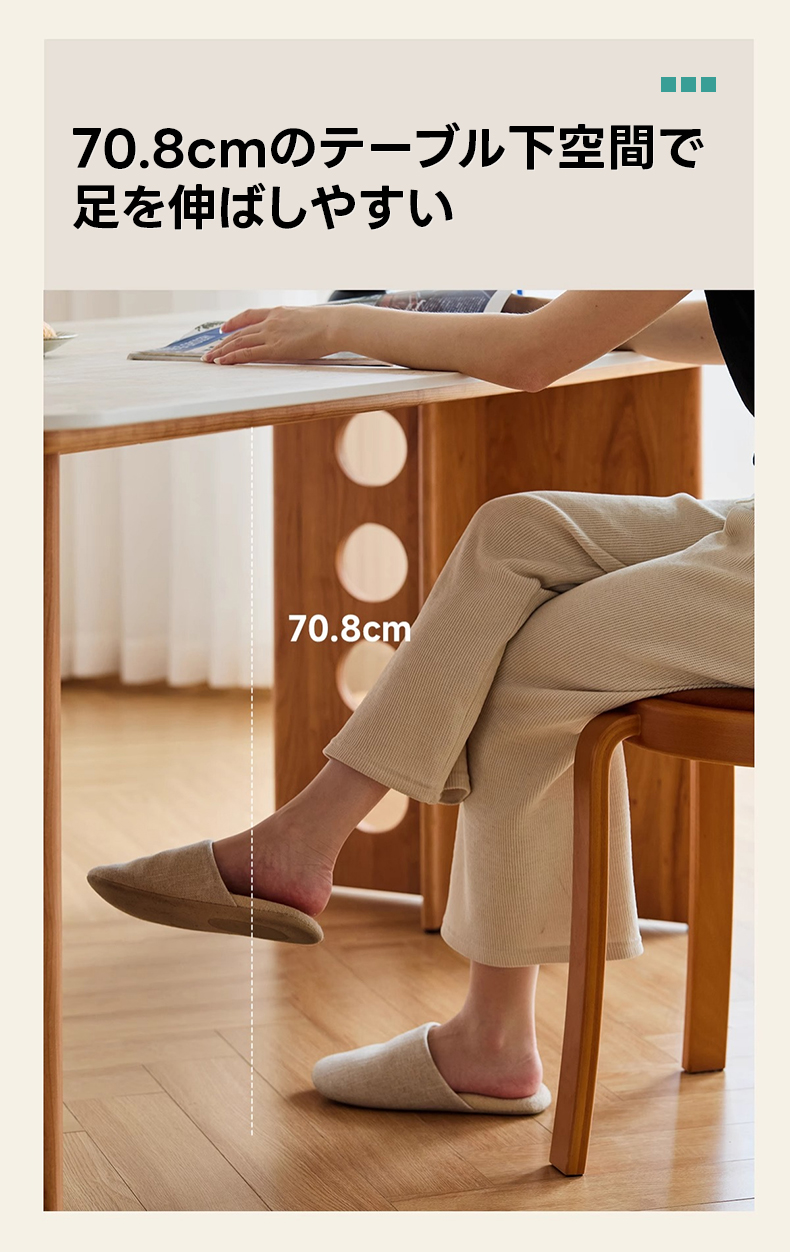- 【快適な使用体験】:テーブルエッジは滑らかで、肘が痛くならない優しい仕上げです。70.8cmのテーブル下空間は足を伸ばしやすく、快適な食事時間をサポートします。