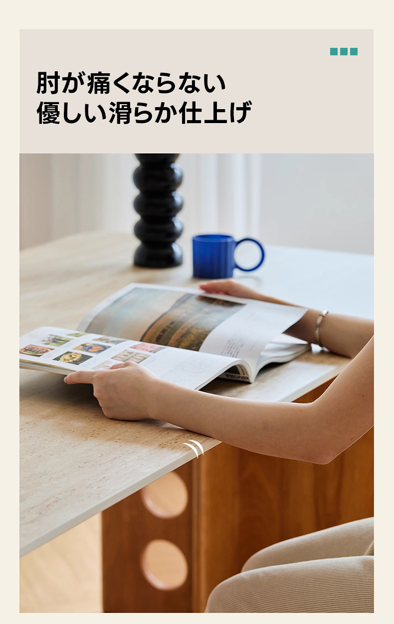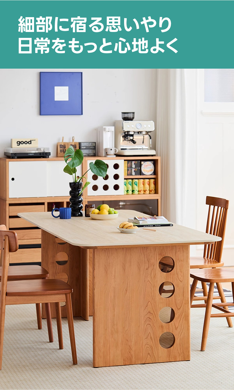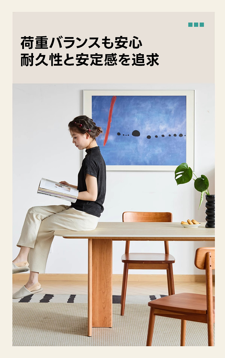 - 【快適な使用体験】:テーブルエッジは滑らかで、肘が痛くならない優しい仕上げです。70.8cmのテーブル下空間は足を伸ばしやすく、快適な食事時間をサポートします。