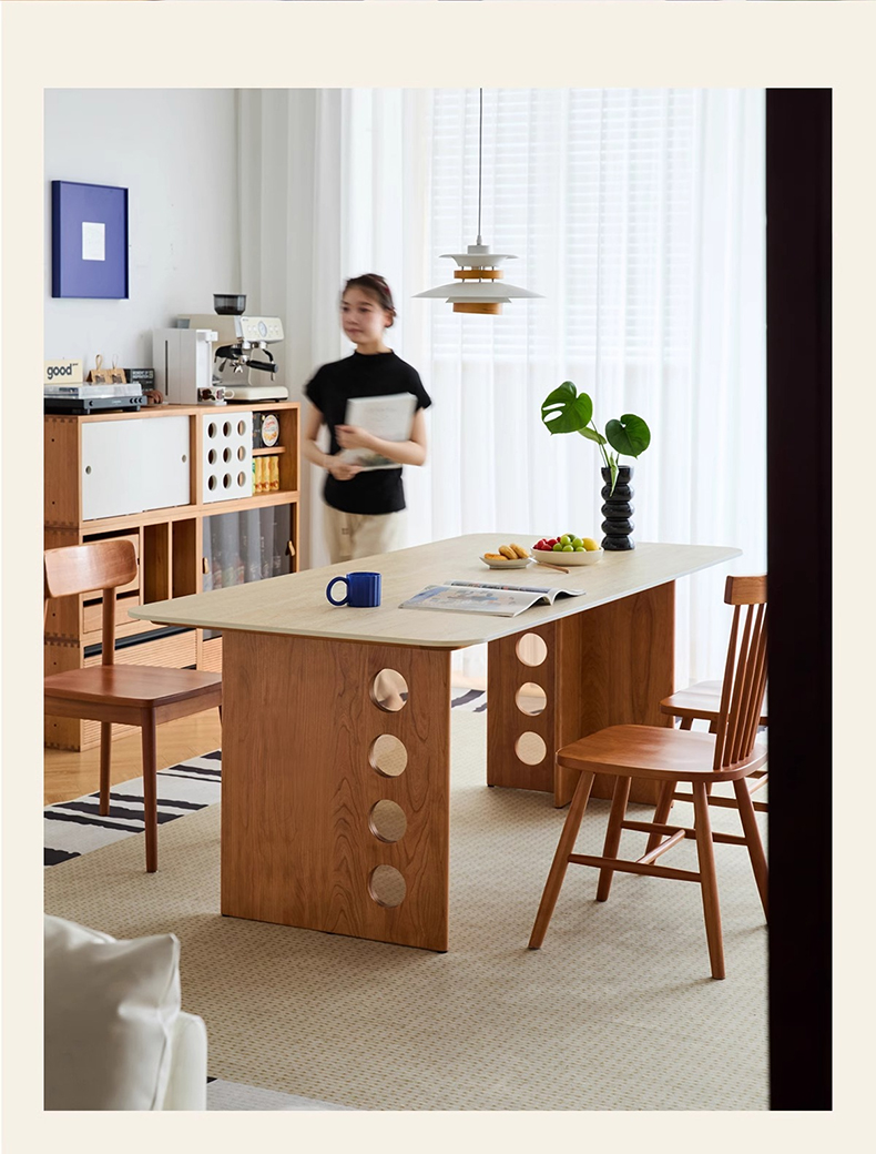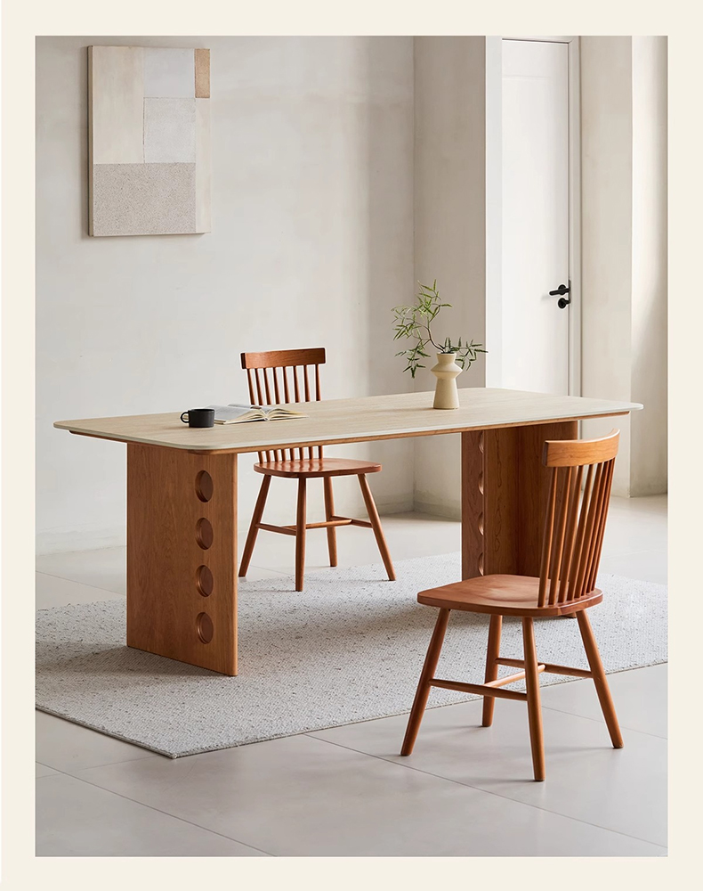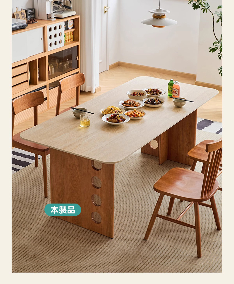 Woody Prime Cherry 天然木トラバーチンダイニングテーブル