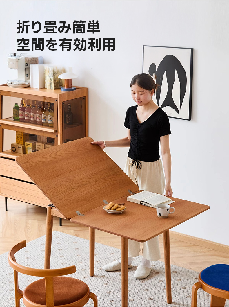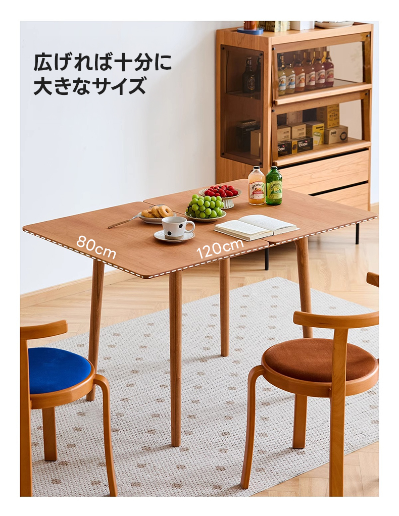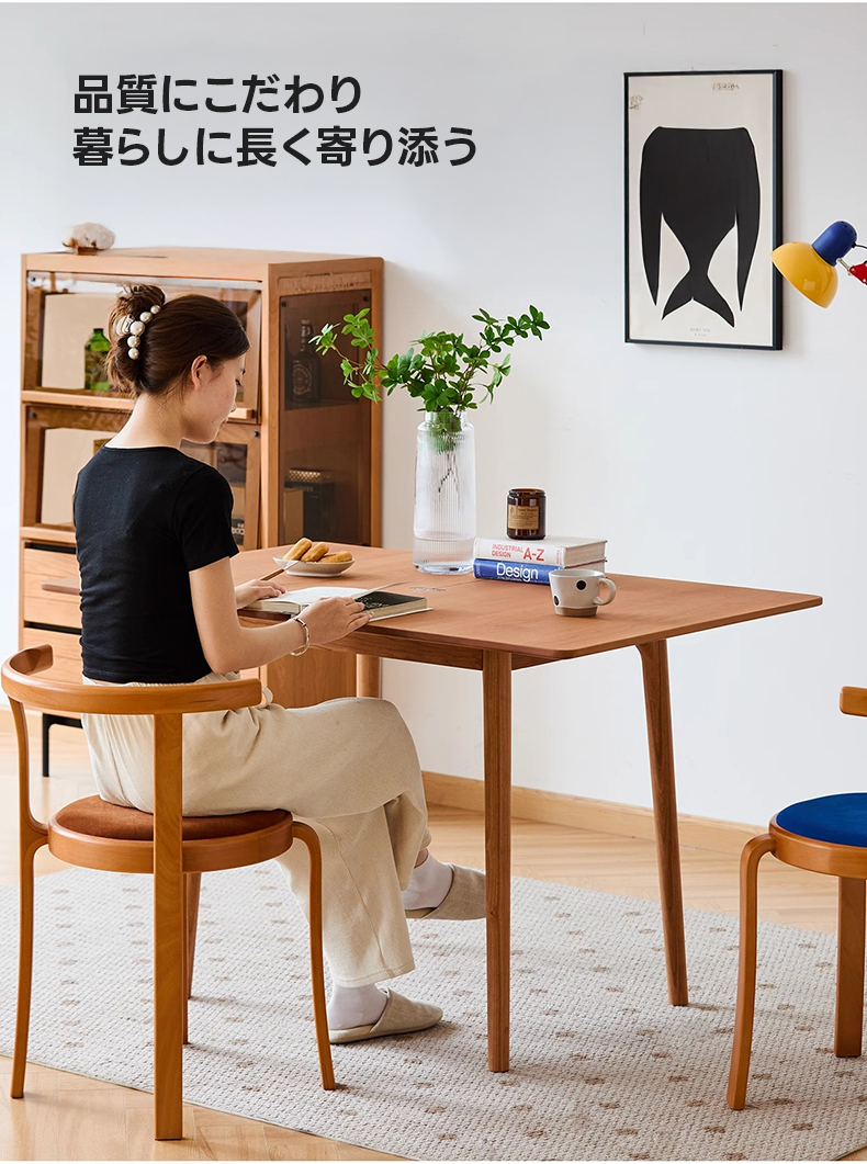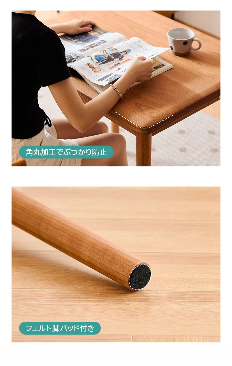 - 【多様なシーンにフィットするデザイン】ナチュラルでベージュの色合いは、どんなインテリアにも自然に溶け込みます。リビングやダイニングでの使用に最適で、温かみのあるチェリー材の木目が空間に高級感を与えます。角丸加工が施されており、安全性も考慮されています。