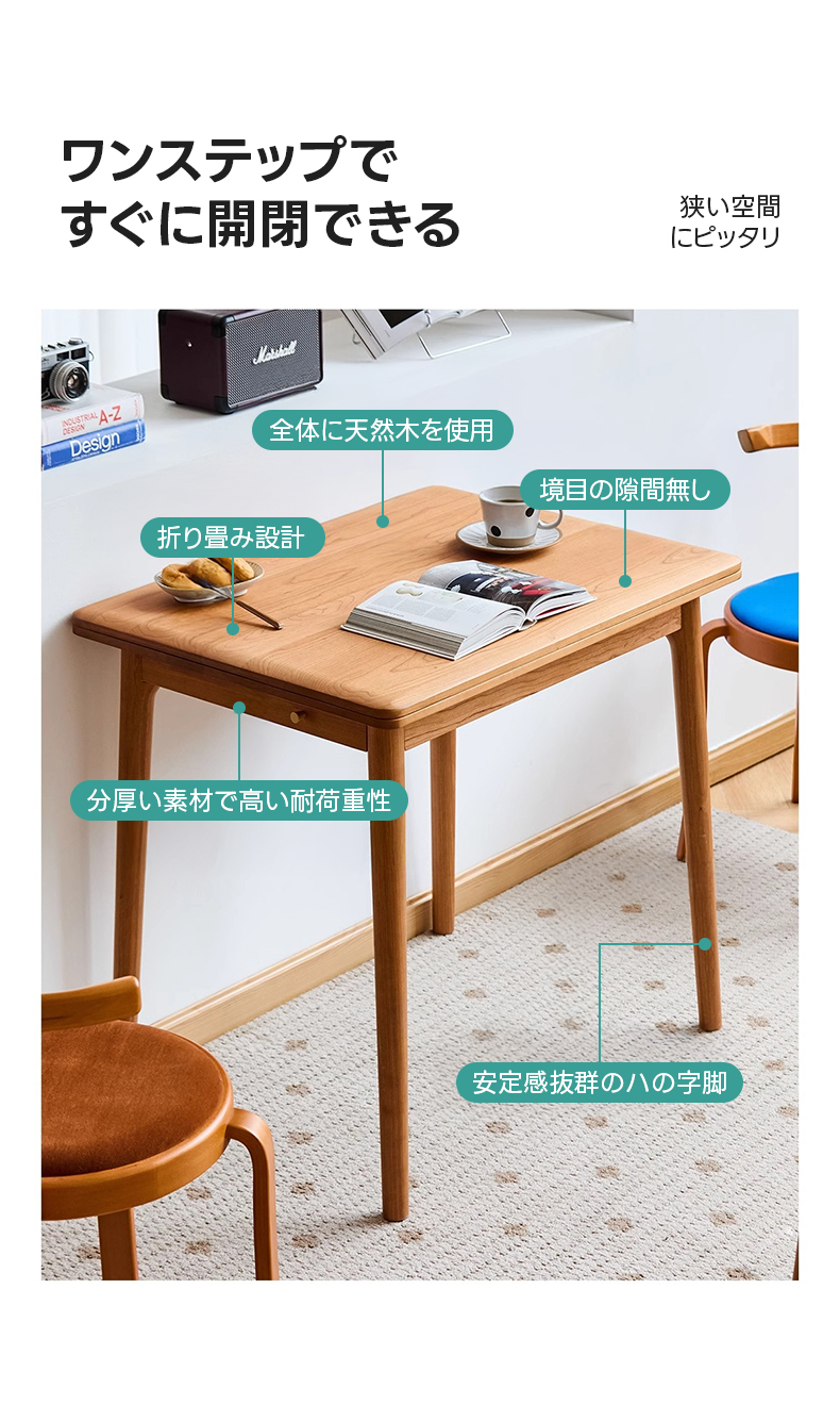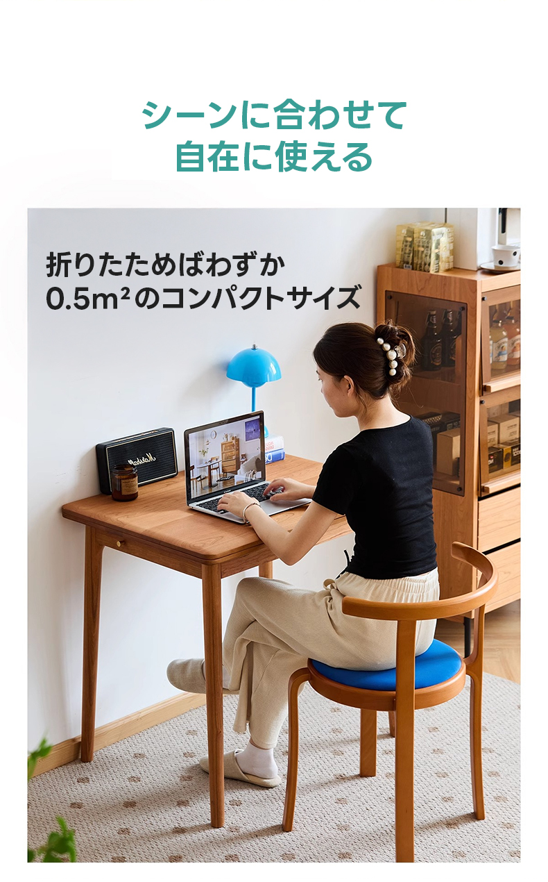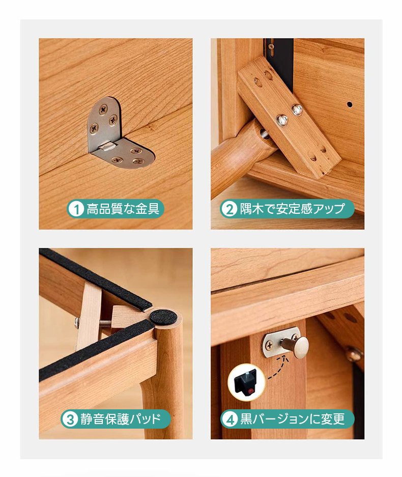 - 【多様なシーンにフィットするデザイン】ナチュラルでベージュの色合いは、どんなインテリアにも自然に溶け込みます。リビングやダイニングでの使用に最適で、温かみのあるチェリー材の木目が空間に高級感を与えます。角丸加工が施されており、安全性も考慮されています。