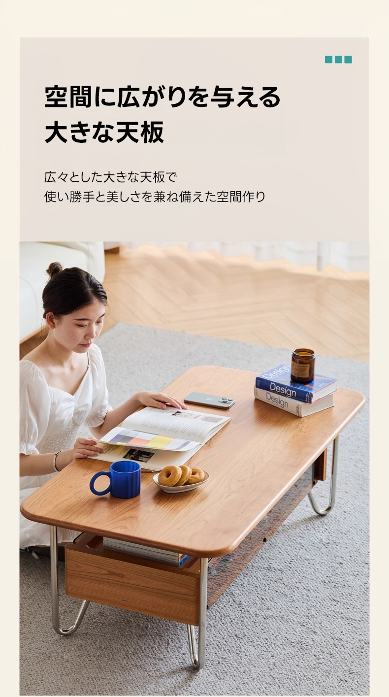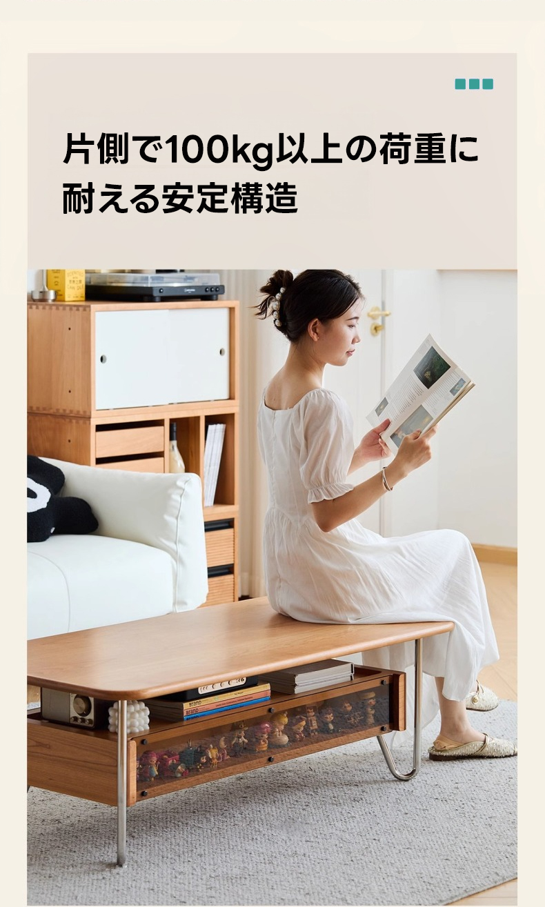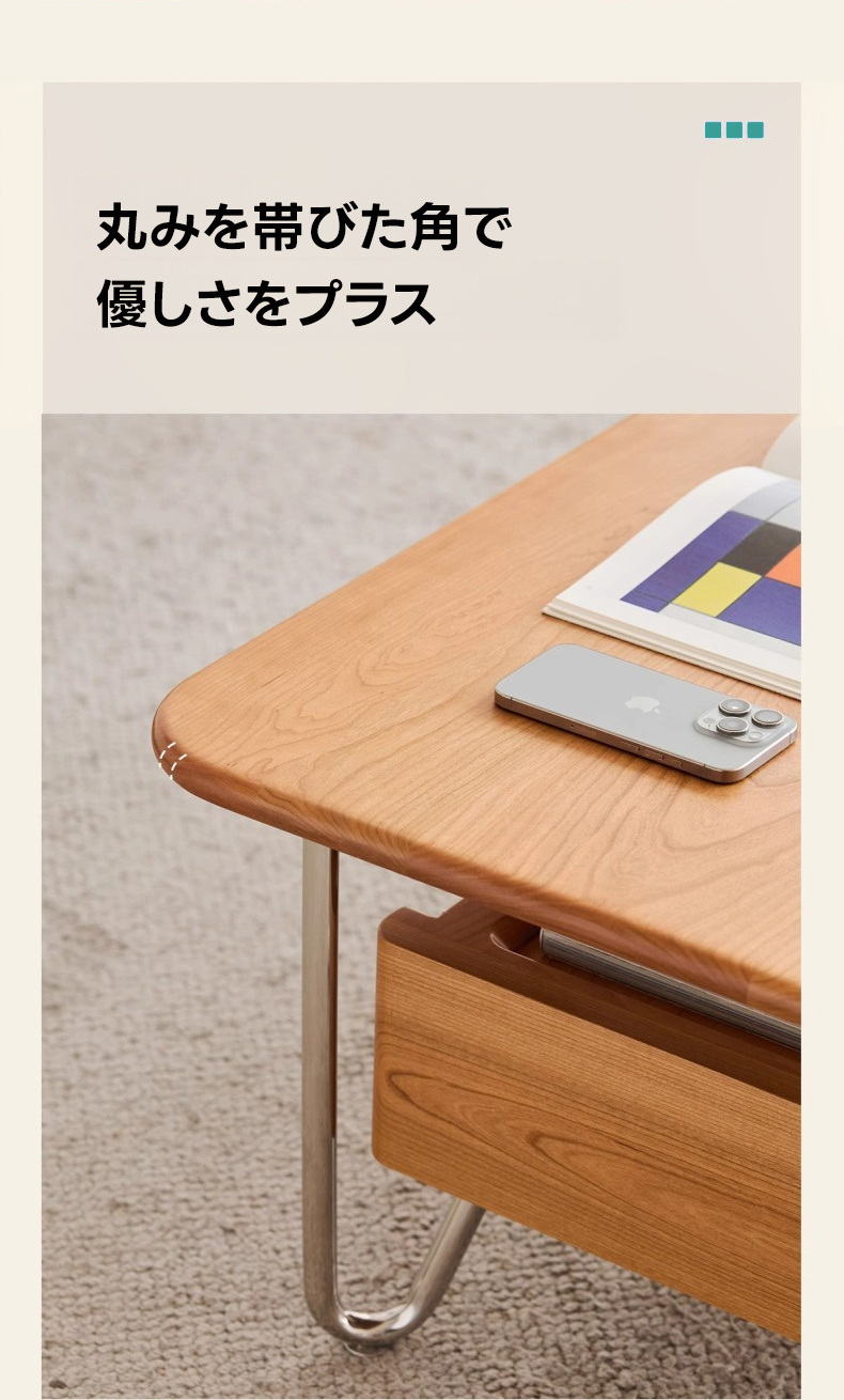 - 【高品質素材とデザイン】北米産のFASグレードチェリー材を使用し、高級感と耐久性を兼ね備えています。U字型のステンレス脚がしっかりと支え、安定性を提供します。
