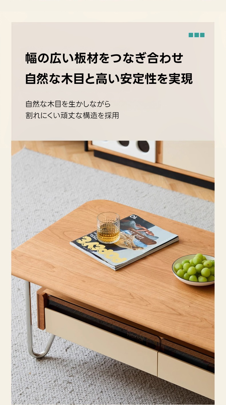 Woody Prime Cherry ガラス収納ローテーブル