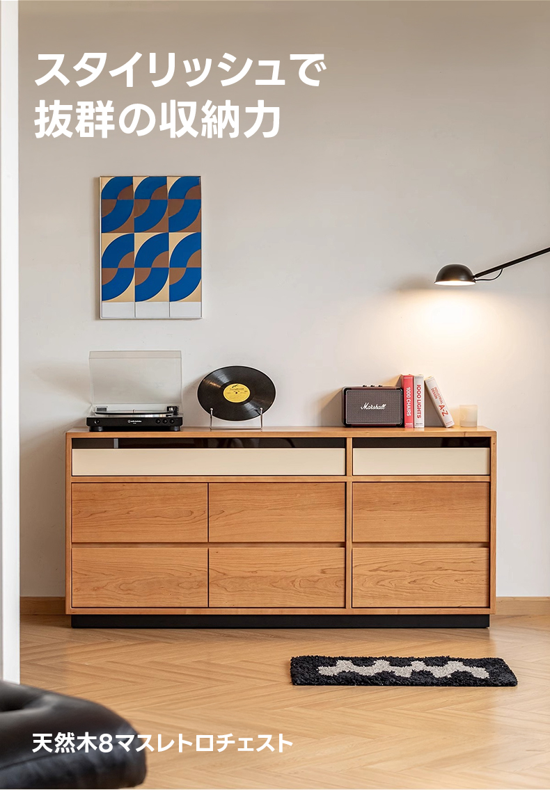 Woody Prime Cherry 天然木8マスレトロチェスト