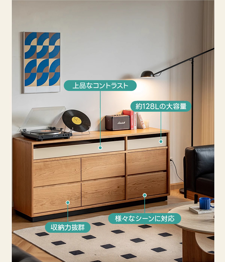 - 【多機能な収納力】340Lの大容量を誇る8つの引き出しチェストで、ティッシュや衣類、おもちゃなどをすっきり整理。木製レールを採用し、滑らかな引き出し動作を実現。リビングやダイニングに最適な収納家具です。