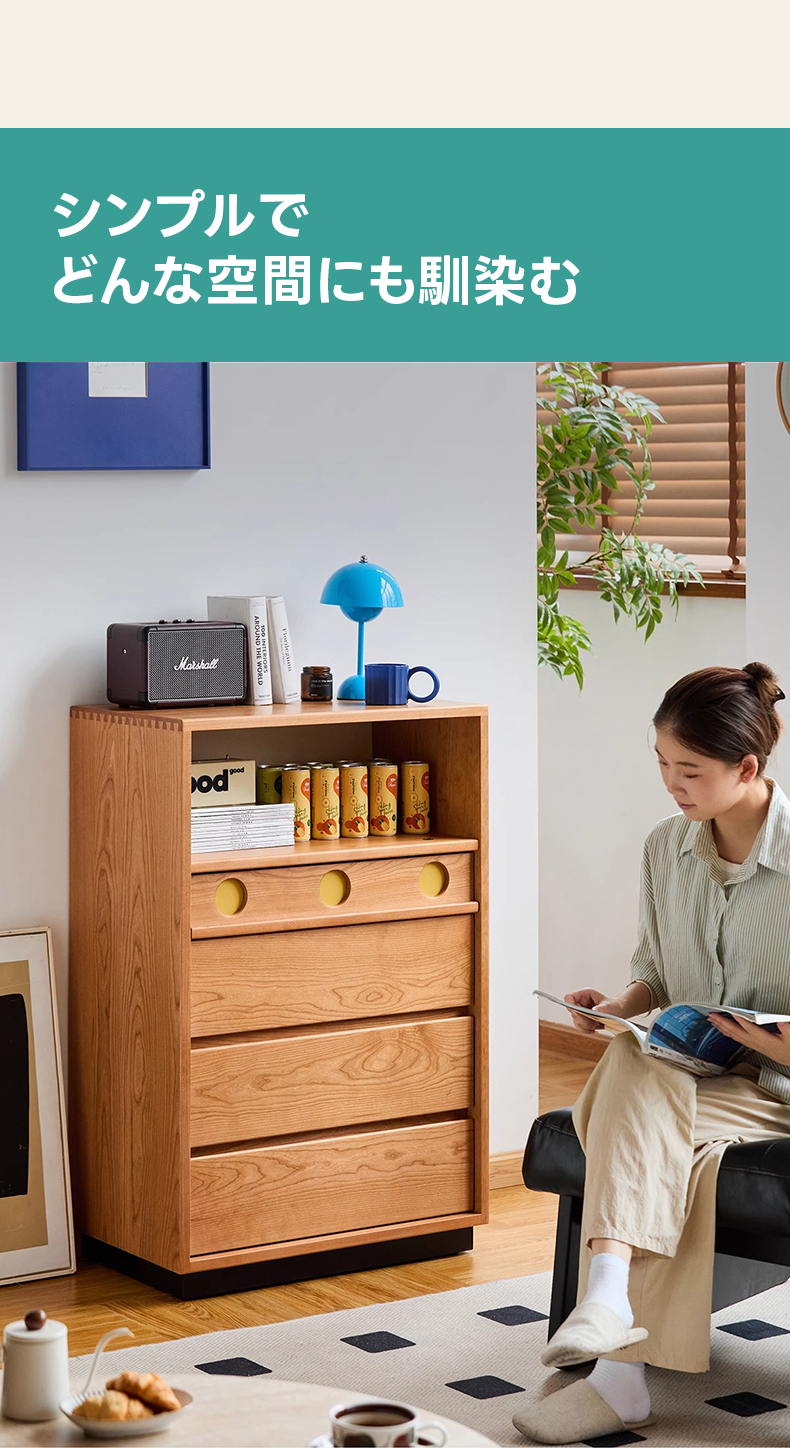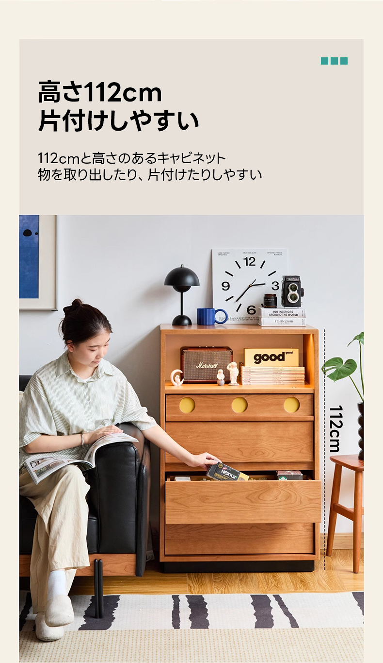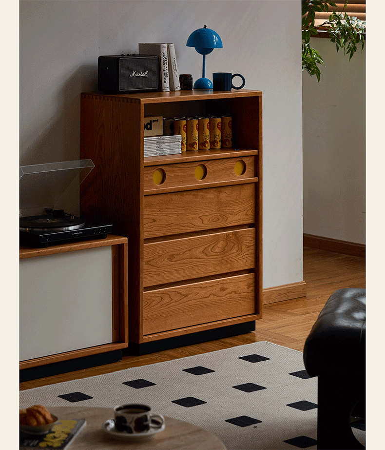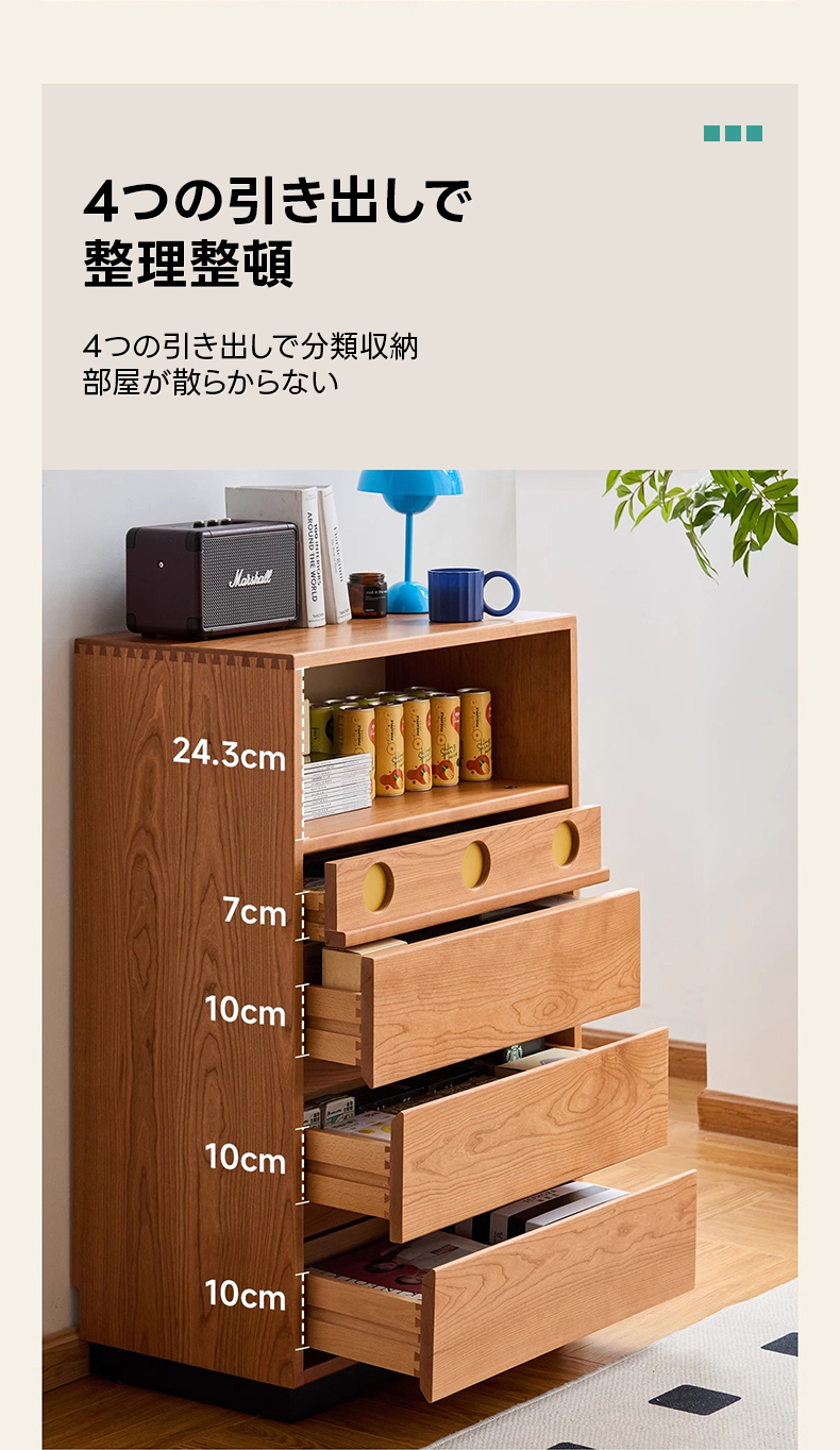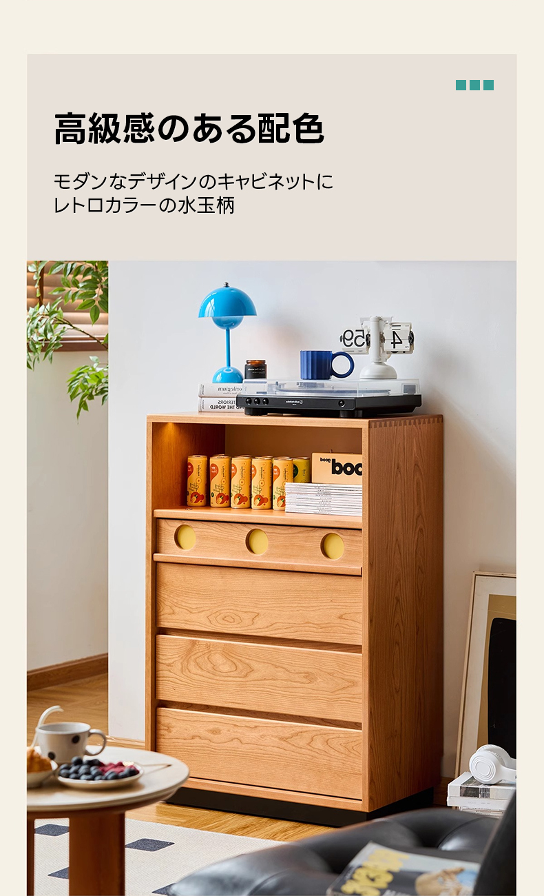Woody Prime Cherry レトロデザイン5段キャビネット