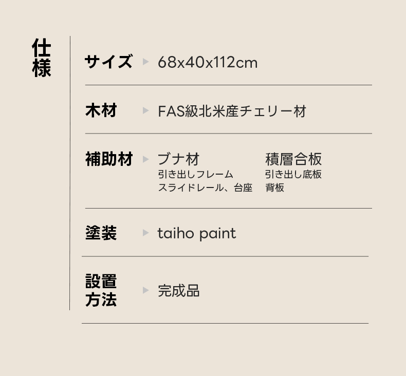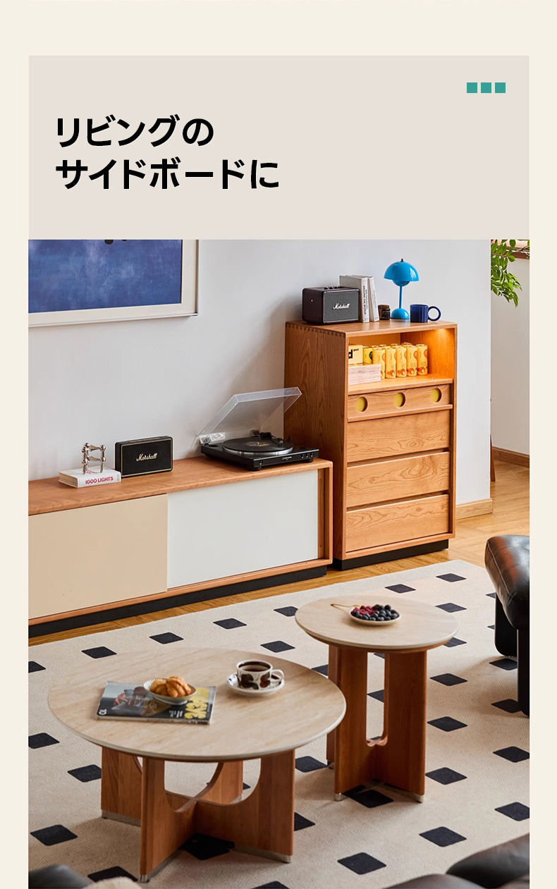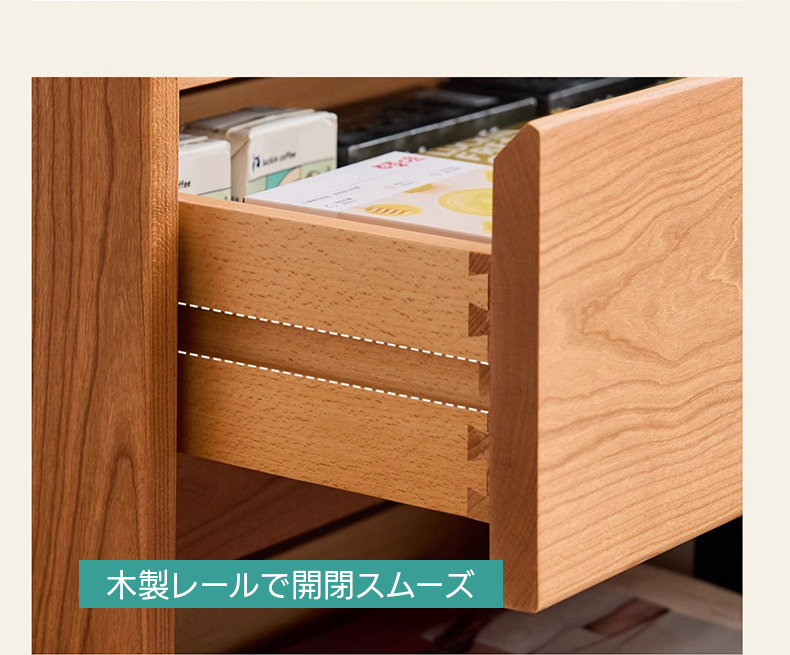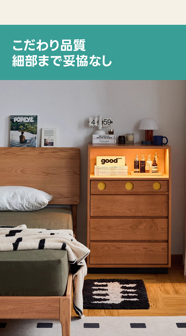 - 【高級チェリー材と細部へのこだわり】北米産FAS級チェリー材を使用し、自然な木目と色合いが時間とともに深みを増します。テーパー加工の手掛けや、ほぞ継ぎを採用した頑丈な設計で、床との隙間がないためホコリが溜まりにくい設計です。