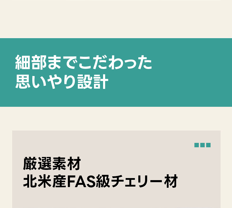 - 【高級チェリー材使用で耐久性抜群】北米産のFAS級チェリー材を使用し、耐久性と美しさを兼ね備えています。時間が経つにつれて色合いが深まり、独特の風合いを楽しめます。