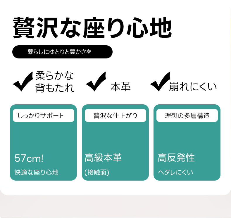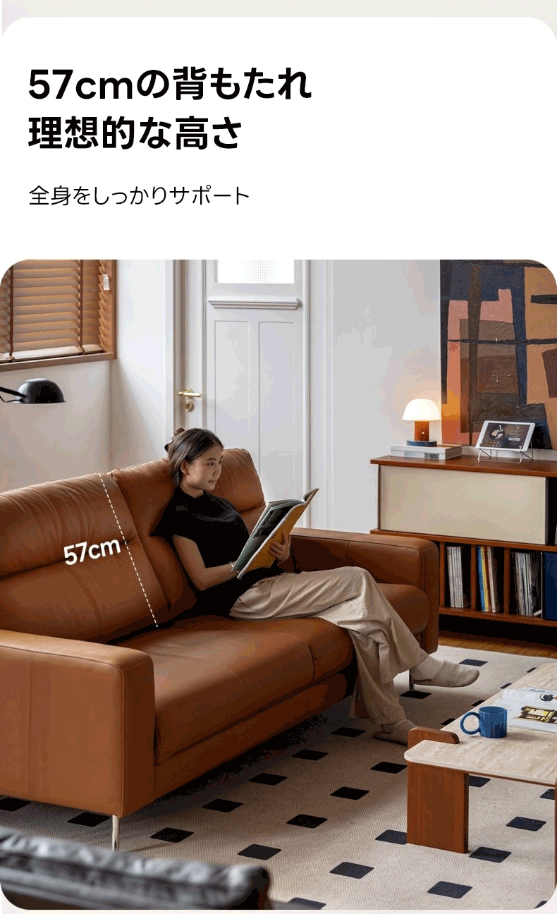 - 【リラックスした時間を提供】背もたれの高さは57cmで、全身をしっかりサポートします。座面の奥行きは58cmで、深い座り心地を提供し、リラックスした時間を過ごせます。高級感あふれるデザインと快適さを兼ね備えたこのソファで、贅沢なひとときをお楽しみください。