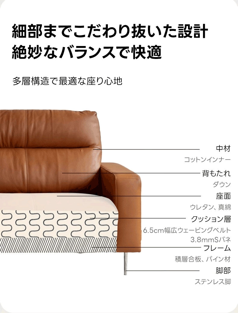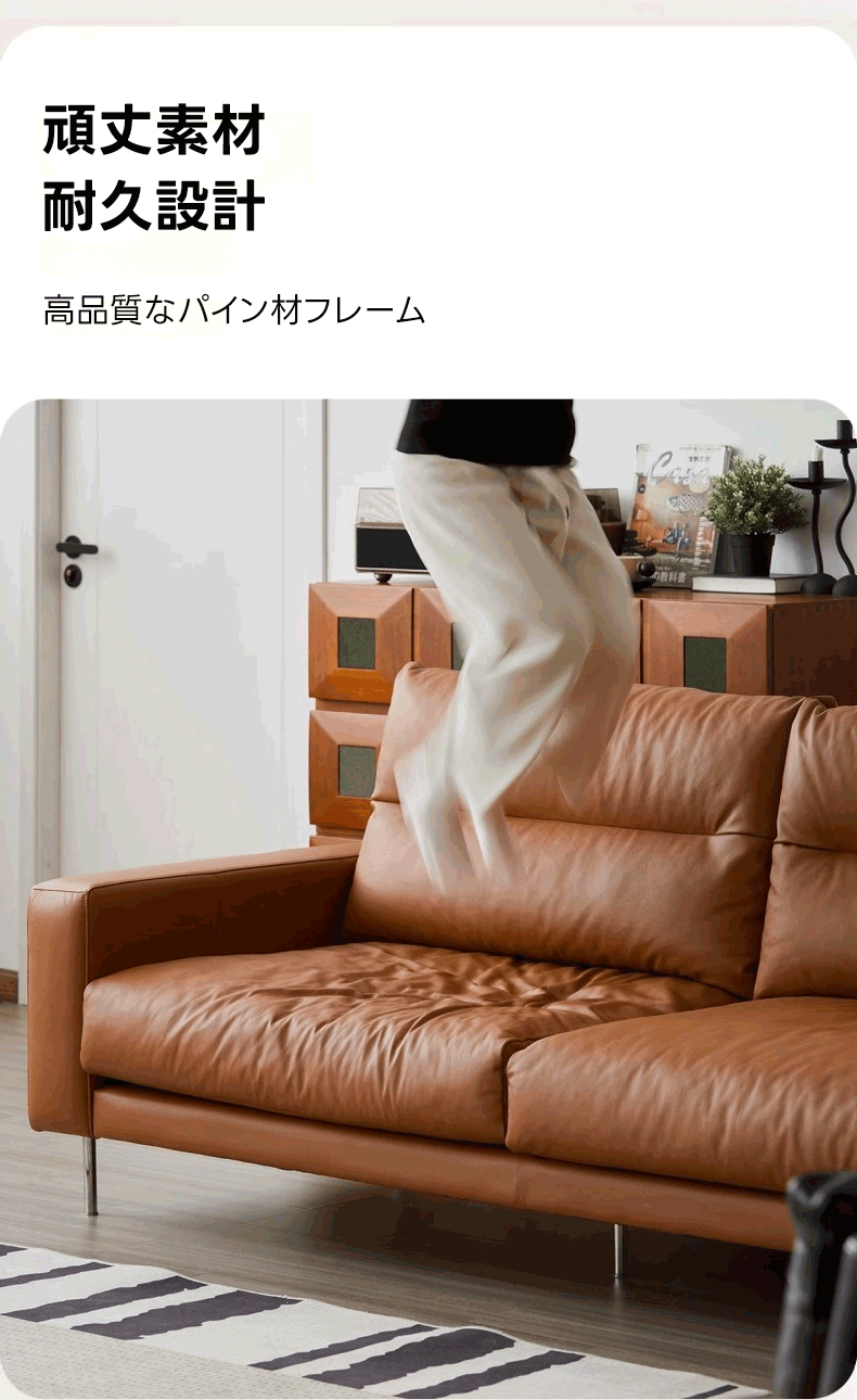 - 【高品質な素材とデザイン】高反発ウレタンと耐久性に優れたコットンインナーを使用し、長時間座っても疲れにくい設計です。頑丈なパイン材フレームとステンレス製脚部が安定感を保証し、クラシックなキャラメルブラウンのカラーがどんなインテリアにもマッチします。