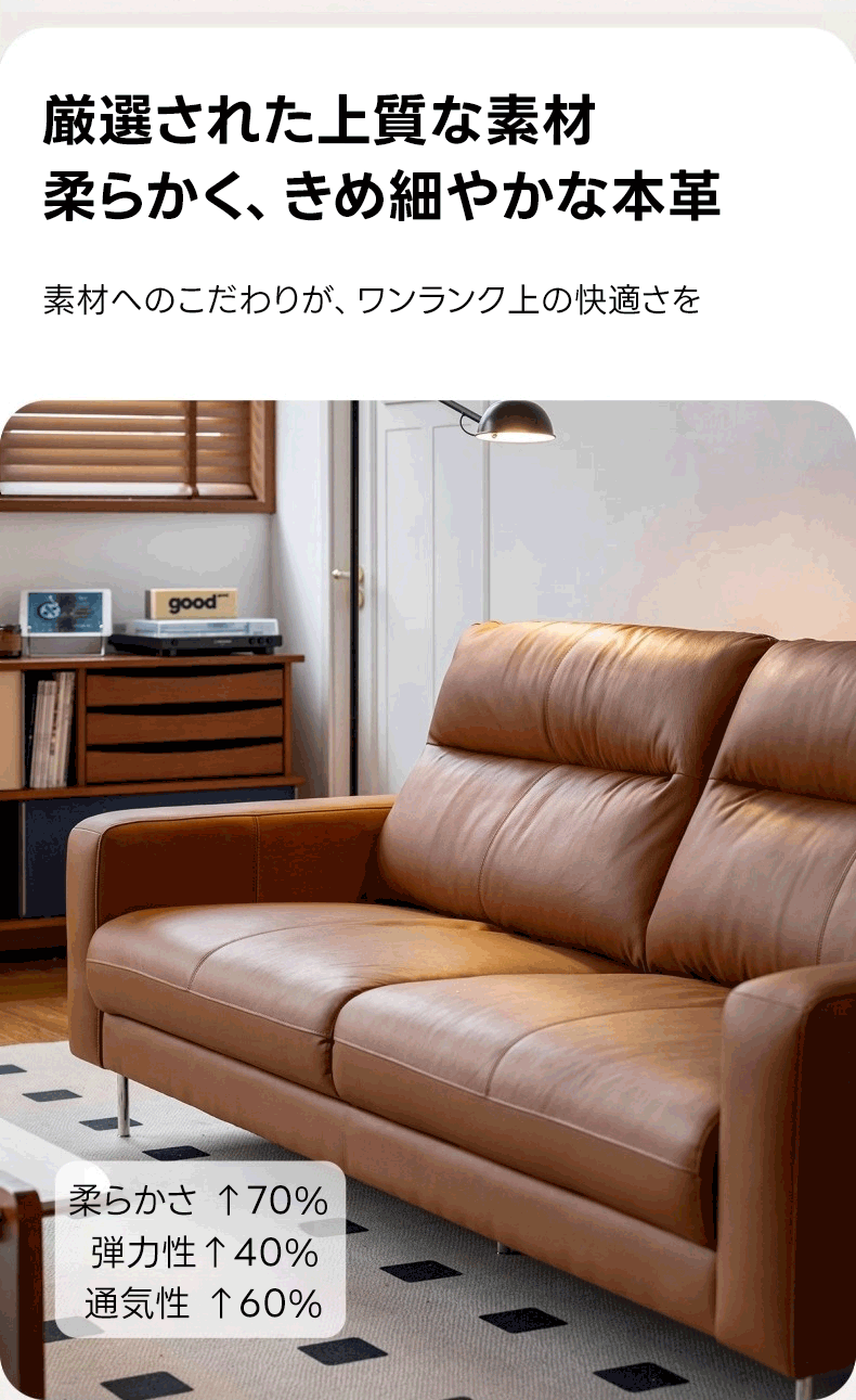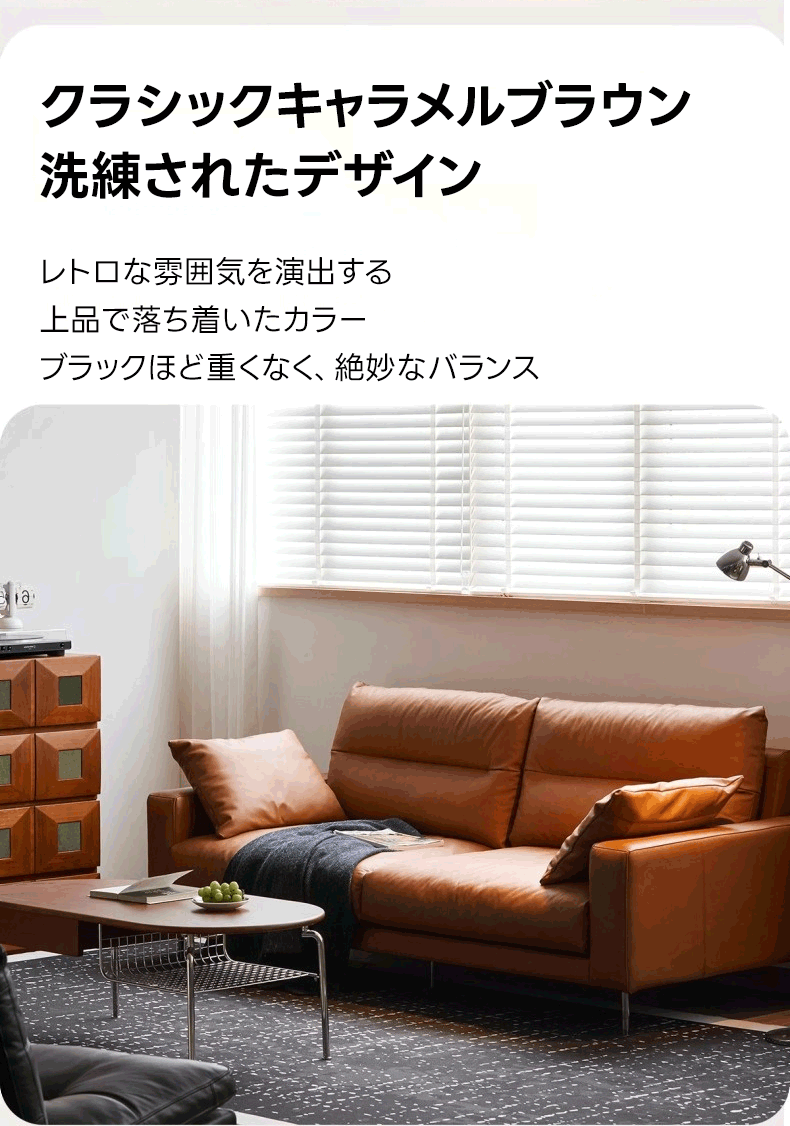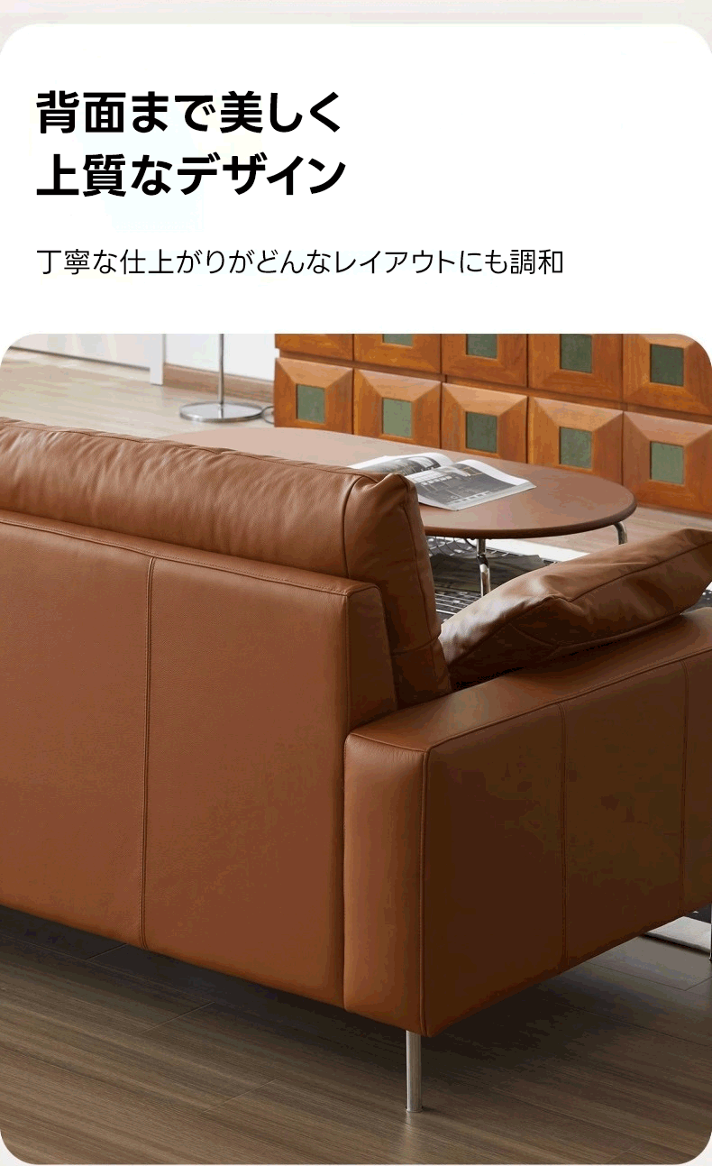 - 【快適な座り心地と高級感】このモダンブラウンレザーソファは、快適な座り心地を提供し、リビングルームをスタイリッシュに演出します。高級本革を使用しており、触れるたびに滑らかな手触りを楽しめます。