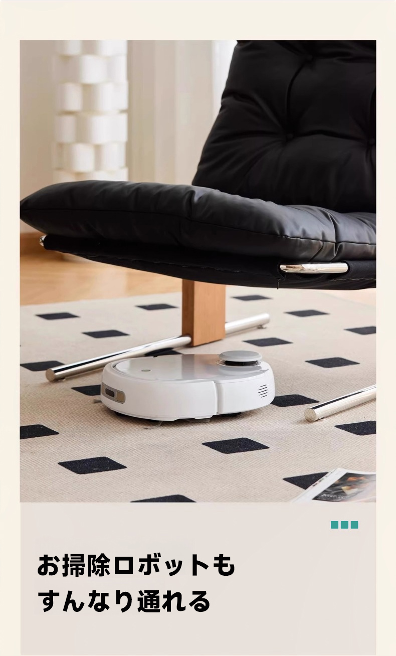 - 【多様なシーンで活躍するデザイン】:このチェアはリビング、書斎、バルコニーなど、さまざまな空間でお洒落な雰囲気を演出します。カップルやファミリー、一人暮らしの方にもぴったりで、日常のリラックスタイムを一層充実させます。お掃除ロボットもスムーズに通れるデザインで、日々の生活をさらに快適にします。