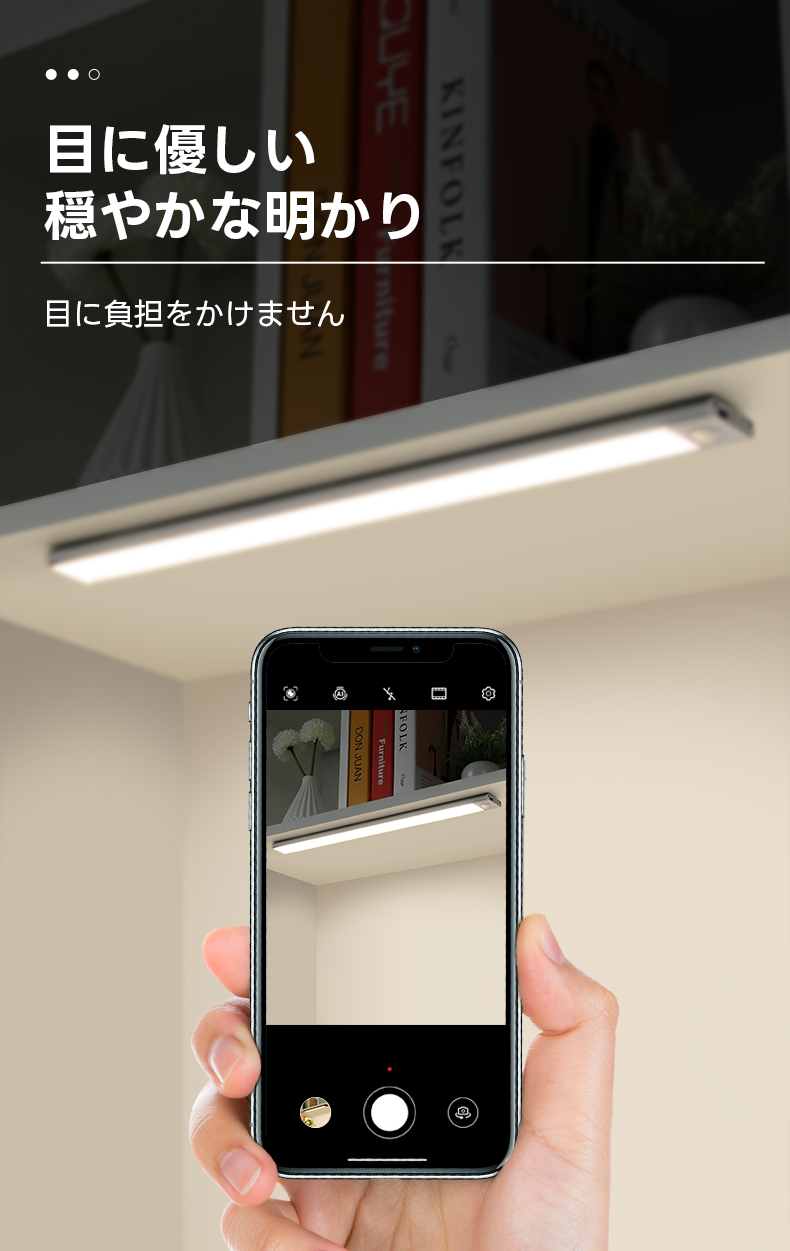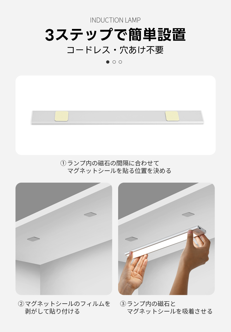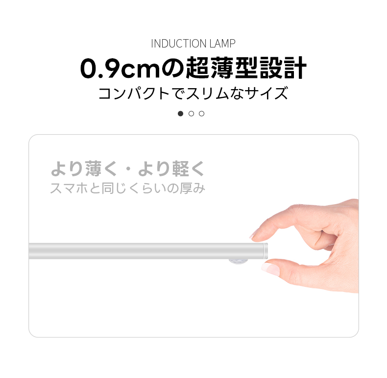 - 【簡単設置と超薄型デザイン】マグネットシールを使用した3ステップの簡単設置で、コードレスで穴あけ不要です。厚さわずか0.9cmのコンパクトでスリムなデザインは、スマートフォンと同程度の薄さで、どんなインテリアにも自然に溶け込みます。
